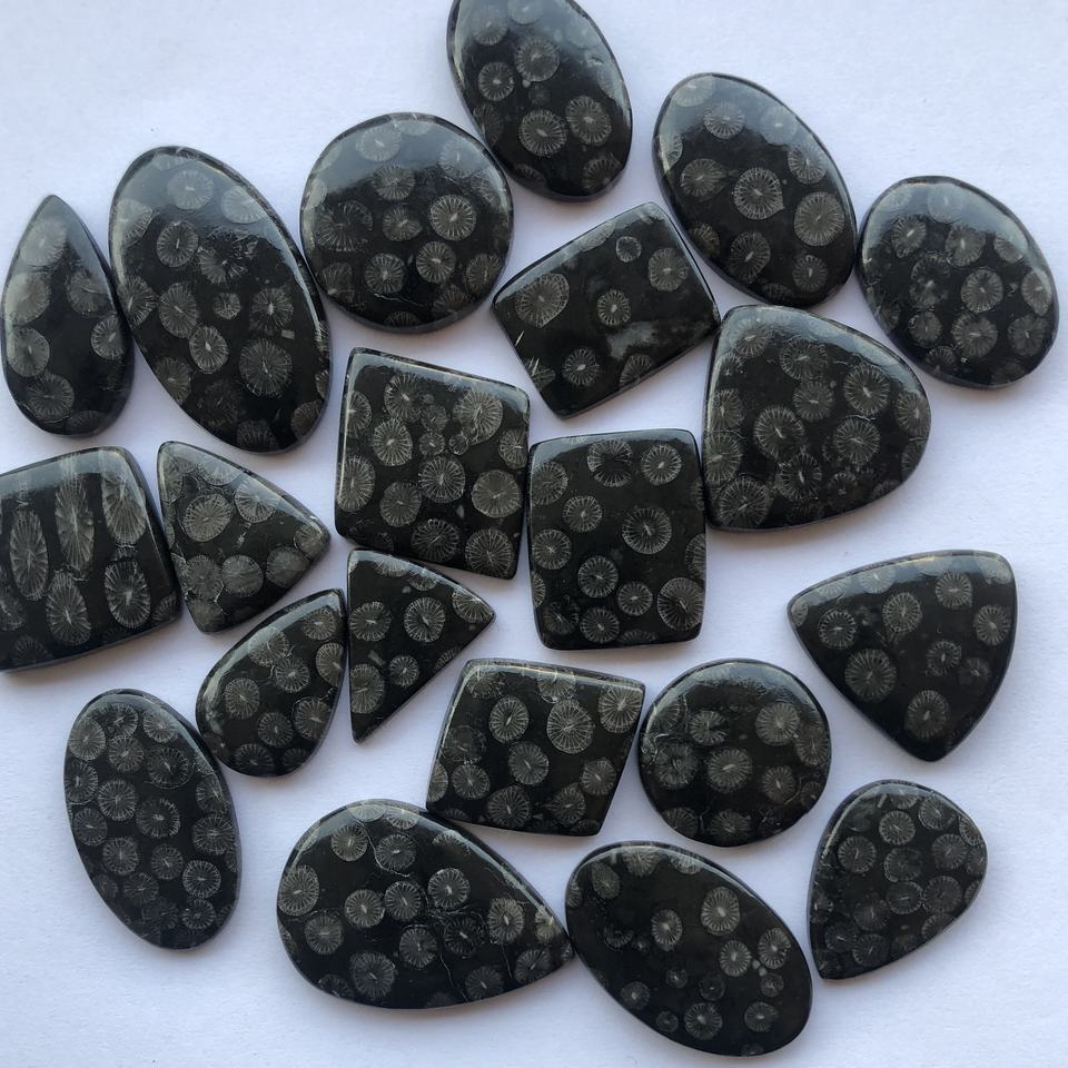 Product Name:Natural Black Fossil Coral Smooth Free Size Loose Cabochon Gemstone