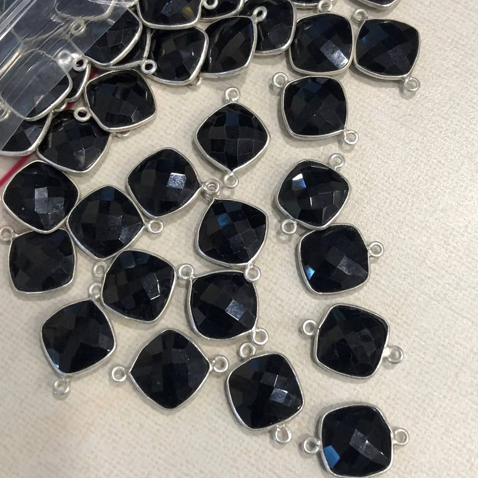 Product Name:Black Onyx Gemstone Cushion Silver Bezel Connector