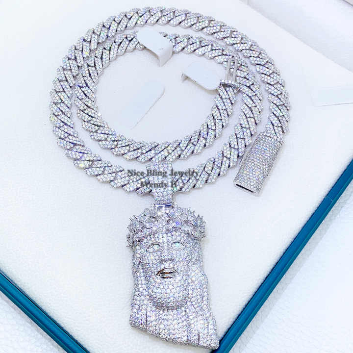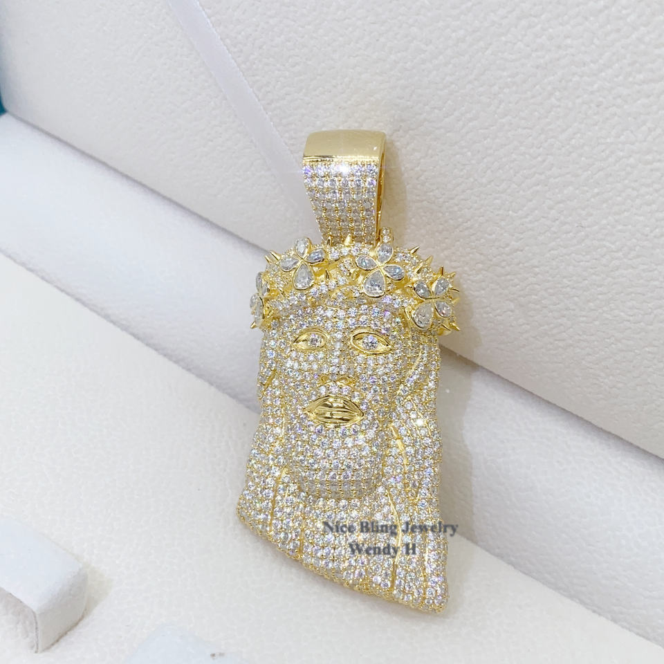 Pendentif Jésus en argent Hip Hop, 10 mm, style cubain, serti de diamants Moissanite, bijoux de rappeur