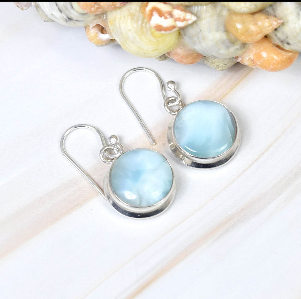 Wholesale 10mm Larimar round Cabochon Bezel Dangle Earrings Gold Plated Trendy Wedding Jewelry Fashionable Gift Idea