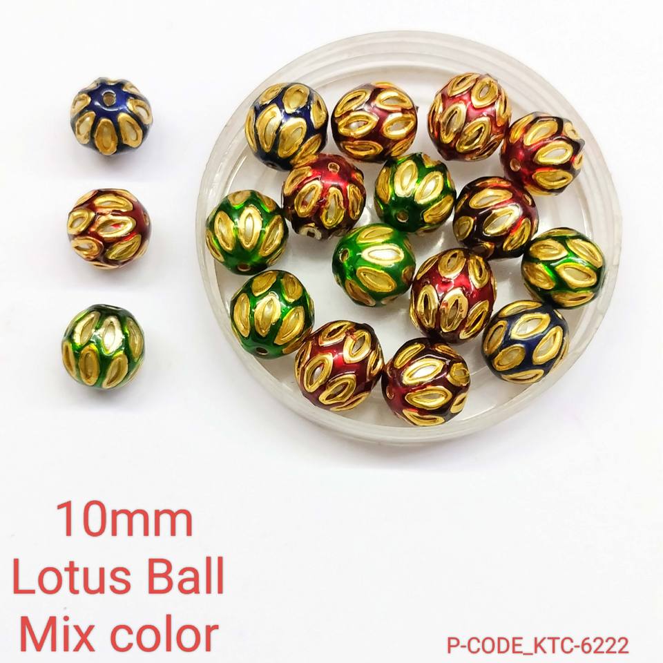 Perles de verre multicolores à motif Lotus de 10mm avec accents dorés perles décoratives rondes pour bijoux et fournitures d'artisanat