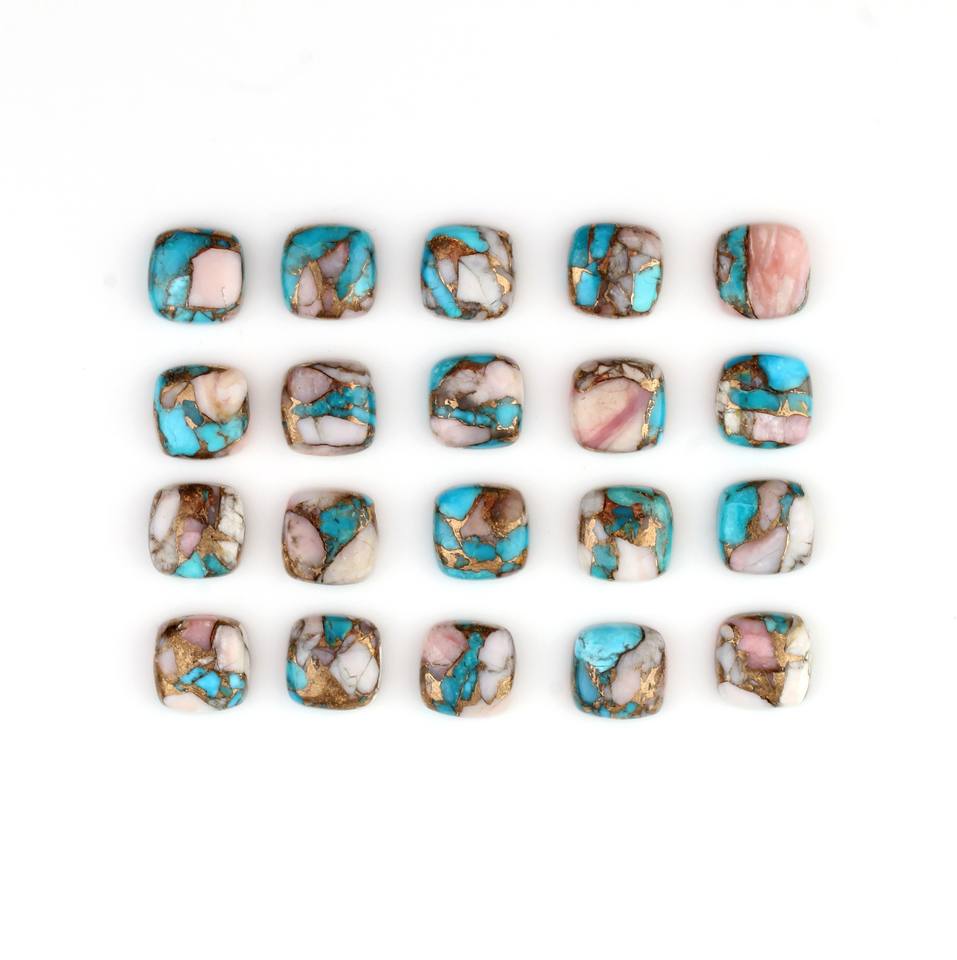 Nom du produit:Rose Opale Cuivre Turquoise Coussin Cabochon Pierres Précieuses Lâche