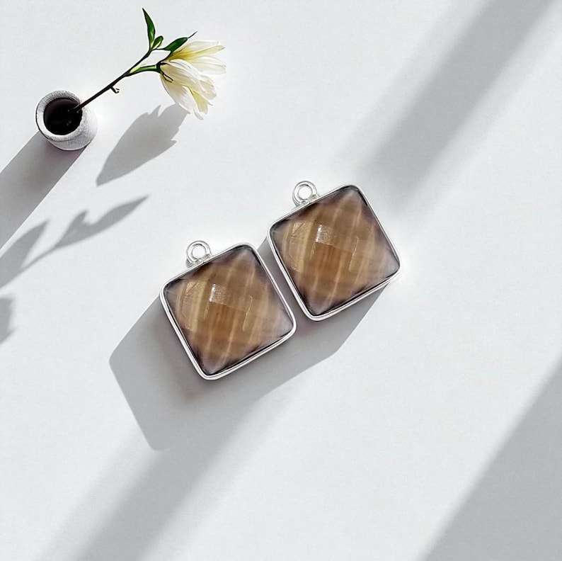 10mm simple boucle lien breloque connecteurs 925 argent Sterling naturel fumé Quartz Checker coupe lunette réglage collier pour les femmes