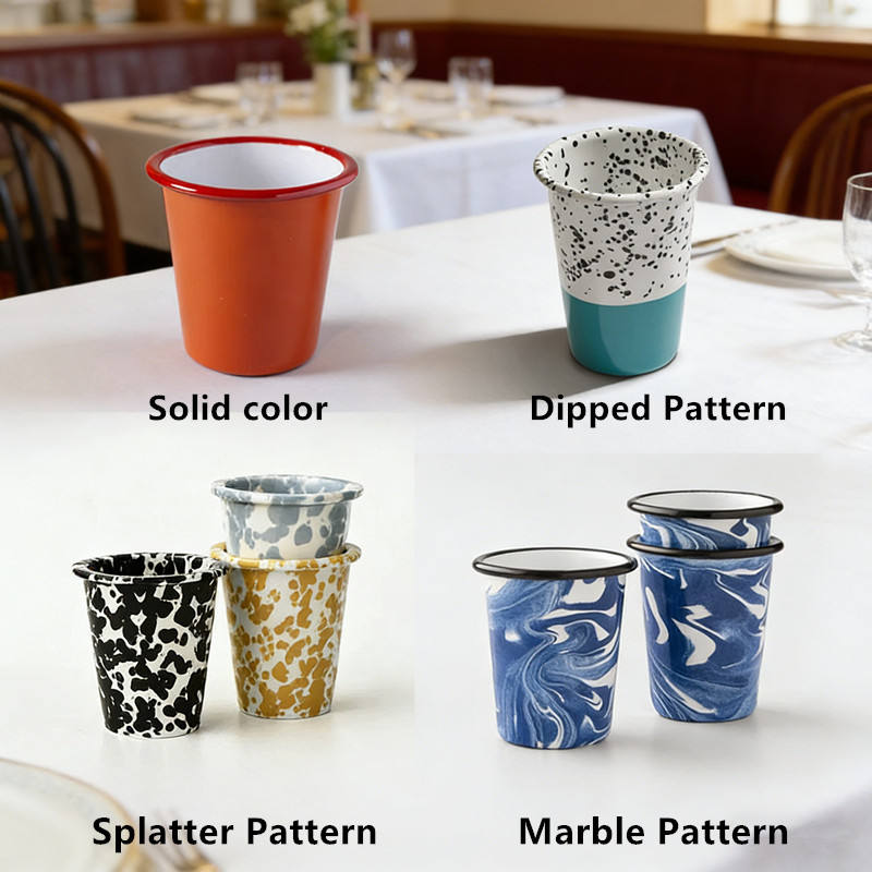Mug isotherme en émail empilable en forme de V de 10 oz, motif marbré bleu personnalisé, effet tourbillon granité, sans anse, pour bière, café, lait