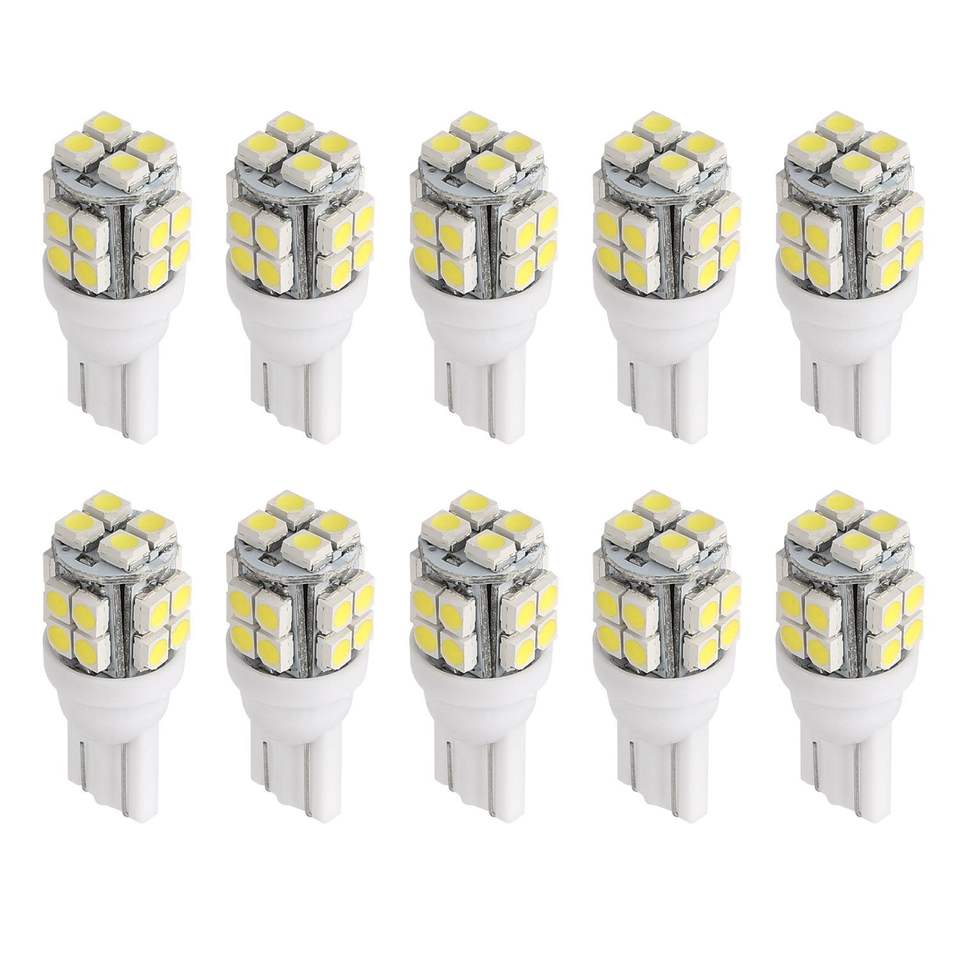 Lot de 10 ampoules LED T10 12V à culot en coin pour éclairage intérieur, plafonnier, carte, plaque d'immatriculation, coffre et éclairage latéral de voiture