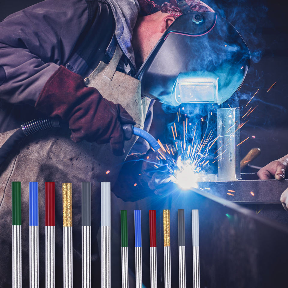 10 pièces d'électrodes en tungstène panchromatiques 2,4x175 mm, aiguilles en tungstène pour machine à souder avec fonction TIG