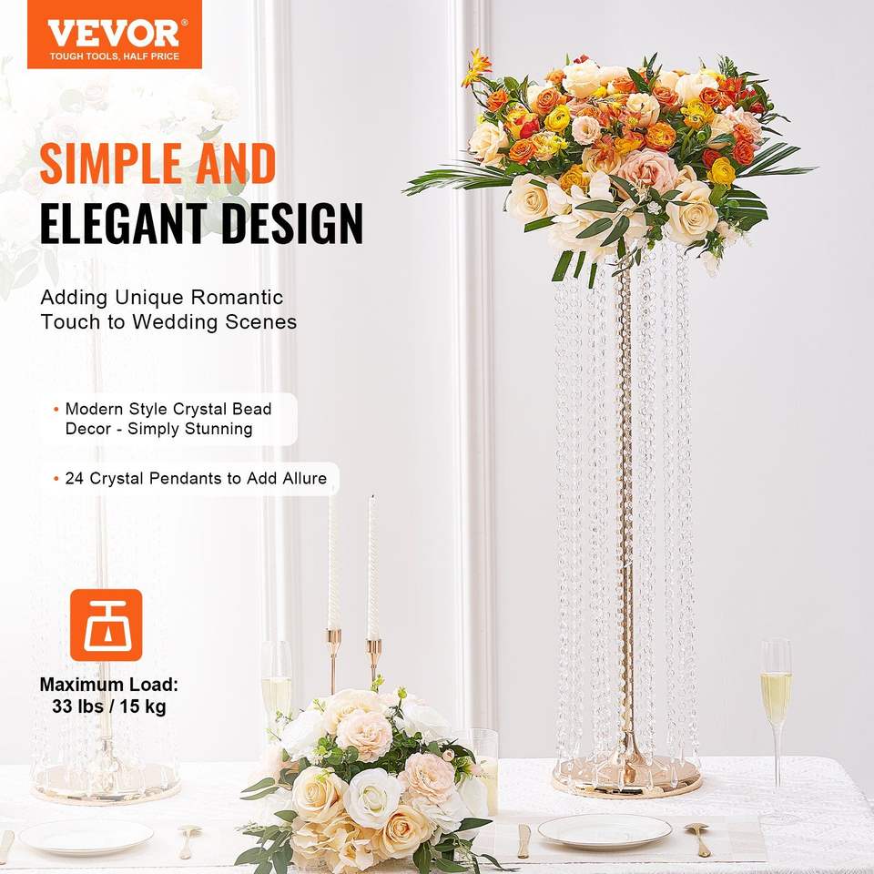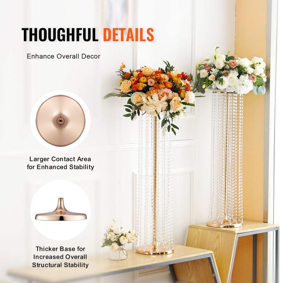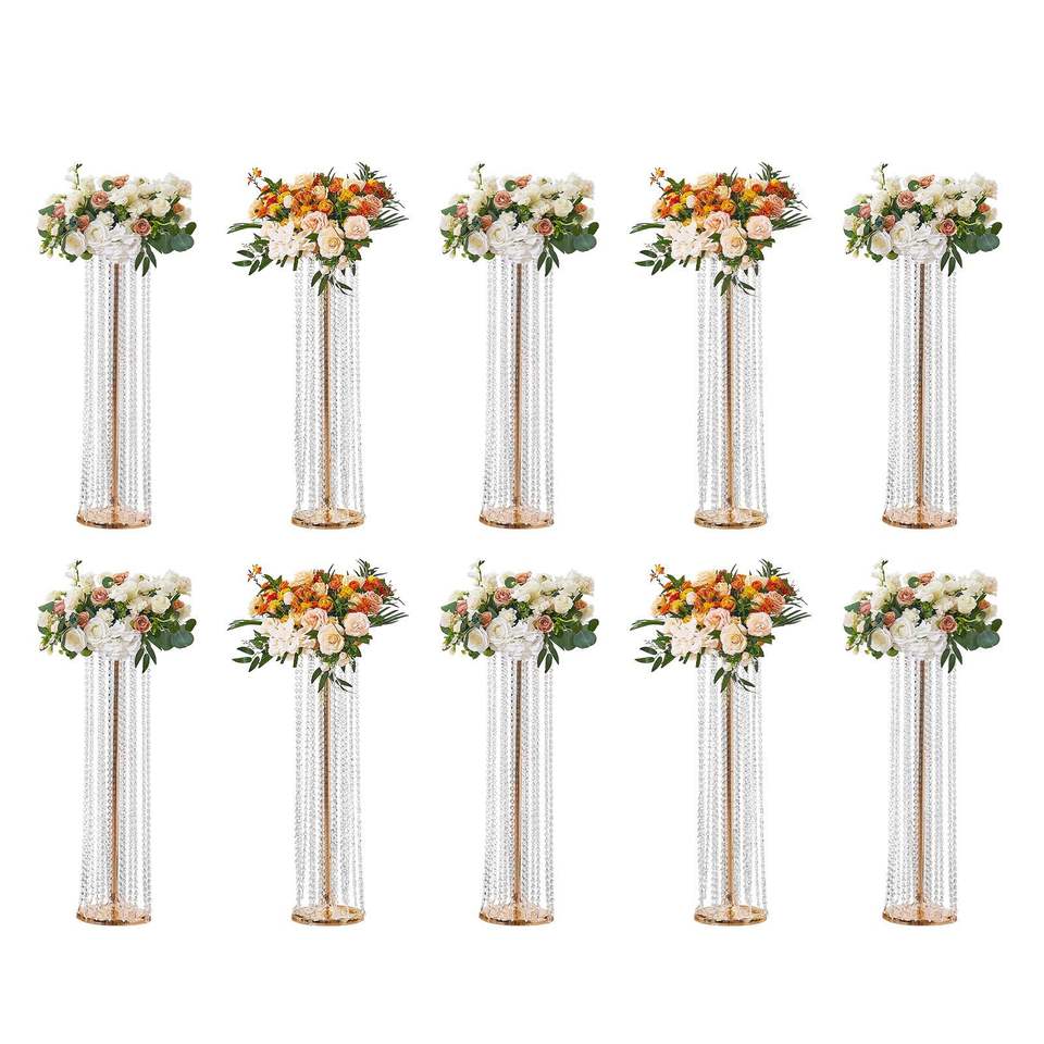 10 pièces de supports de fleurs de mariage en cristal doré de 35,43 pouces de hauteur, centres de table luxueux, vase en métal T-S pour décorations de table
