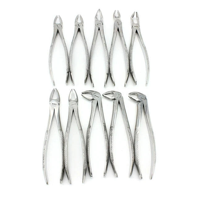 Lot de 10 pinces manuelles orthodontiques pour adultes, forceps d'extraction dentaire en acier inoxydable réutilisables, instruments chirurgicaux dentaires