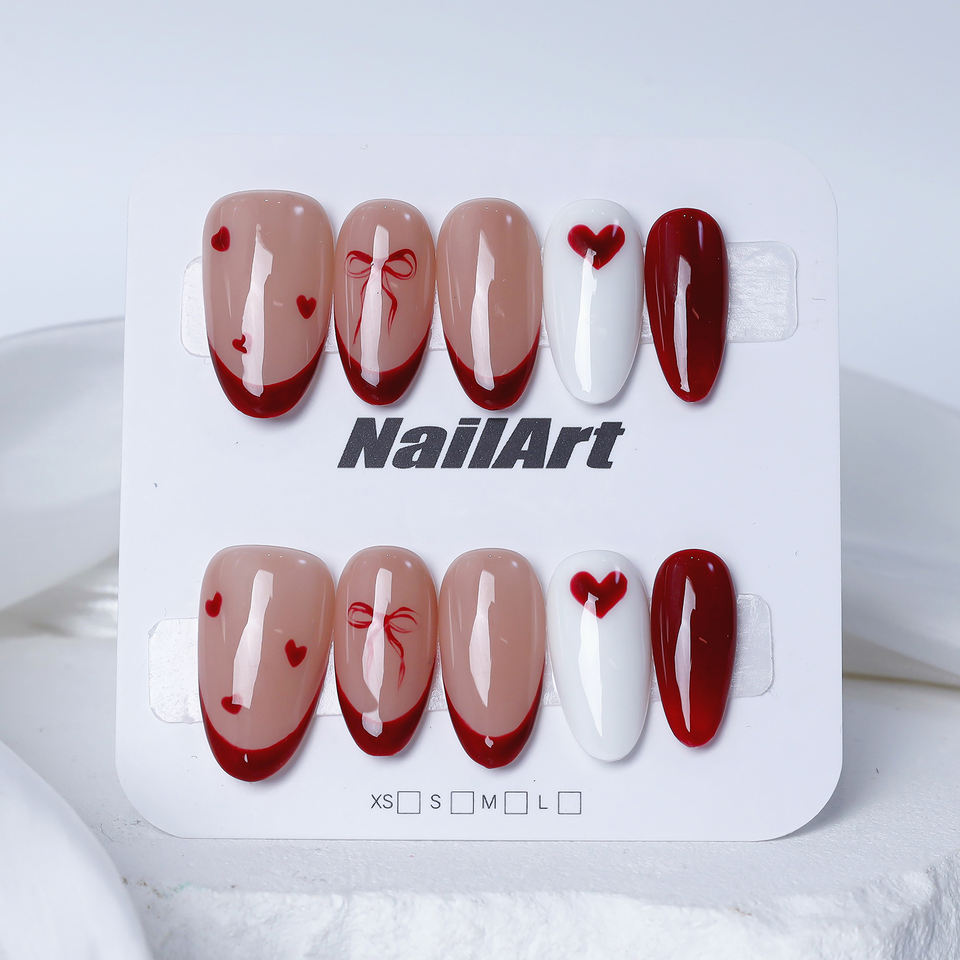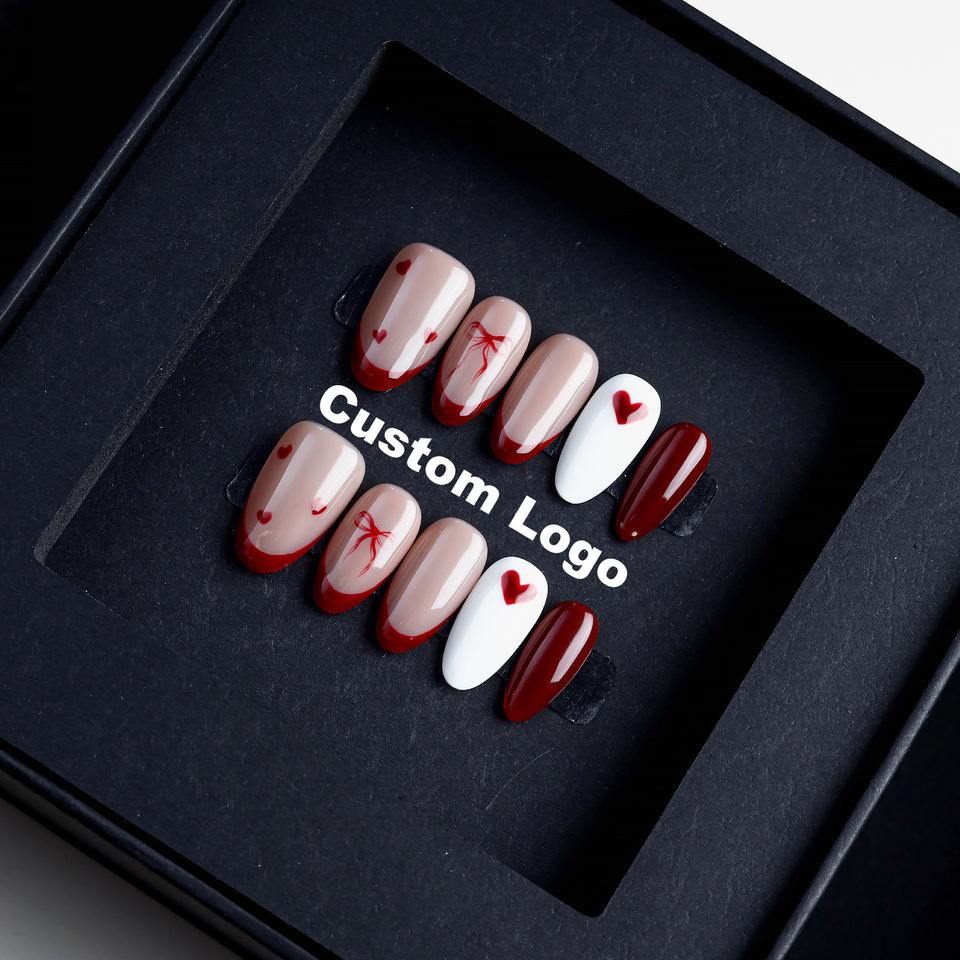 10 pièces de faux ongles en acrylique personnalisés pour la Saint-Valentin, design complet, faits à la main, luxe, vente en gros, art des ongles, faux ongles, faux ongles