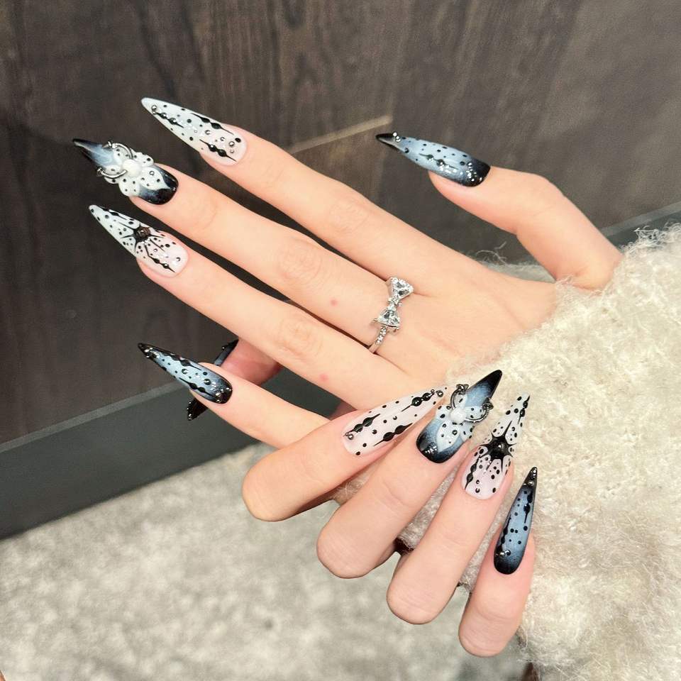 10 faux ongles faits main à presser, motifs griffes de chat rose et noir, couverture complète, manucure portable pour Halloween