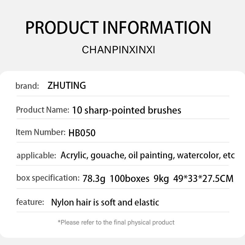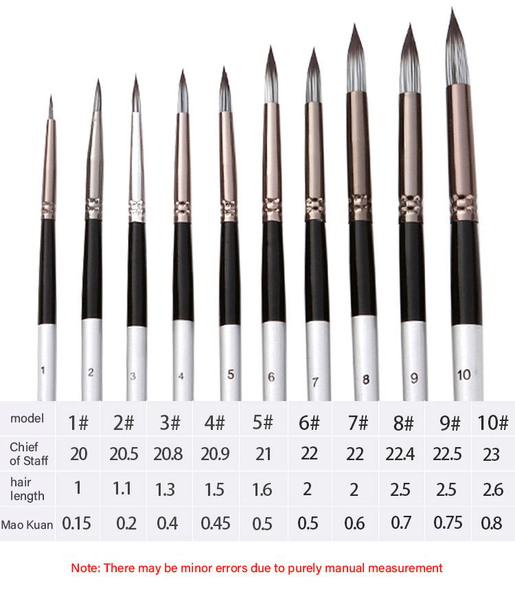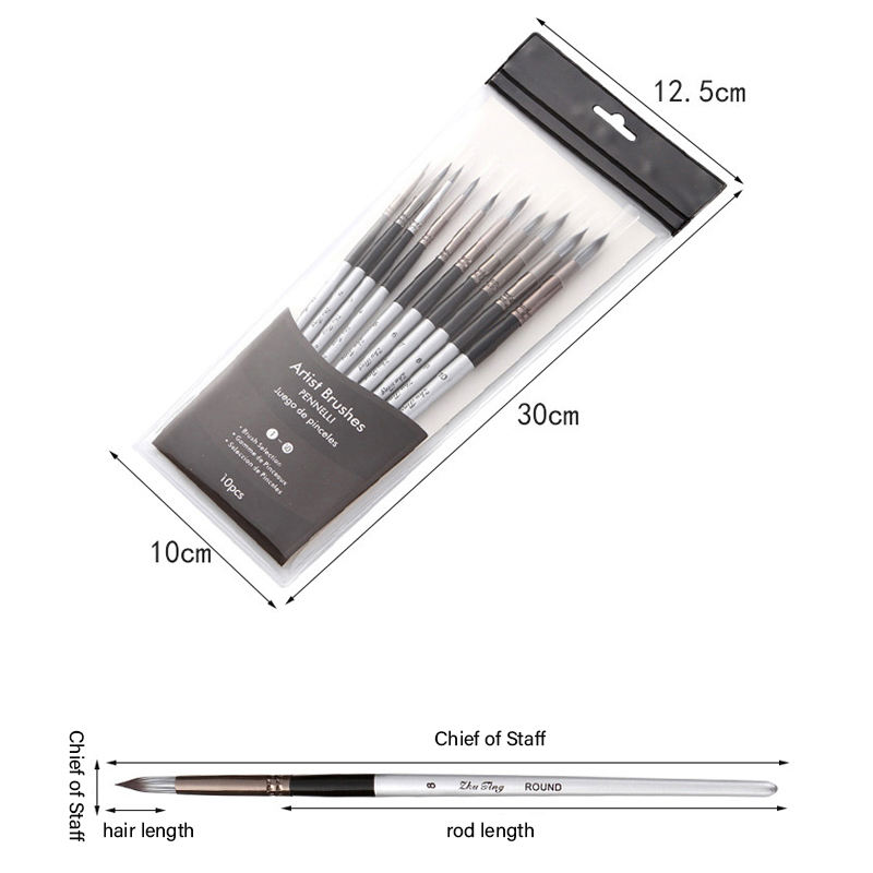 Ensemble de pinceaux d'artiste ronds à pointe pointue, 10 pièces, pour dessin à l'aquarelle