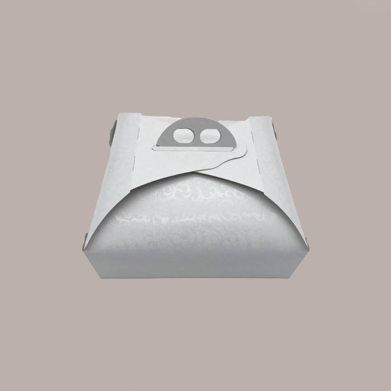 10 pièces blanc damassé carton gâteau boîte 31x31H7cm papier d'art avec brillant/mat stratification gaufrage UV avantage pour l'emballage