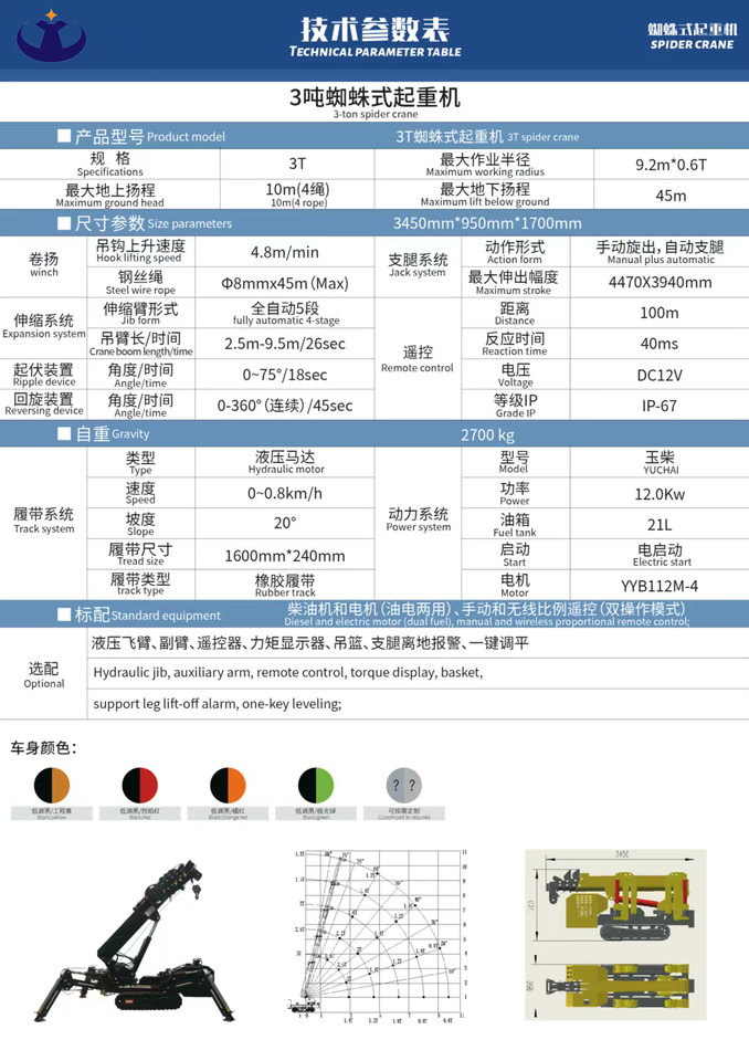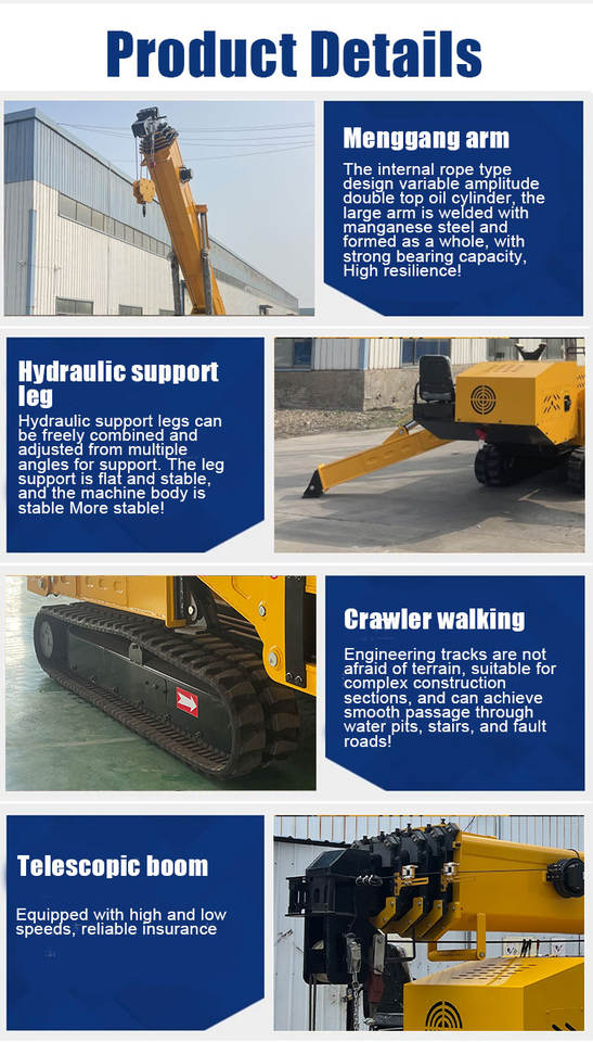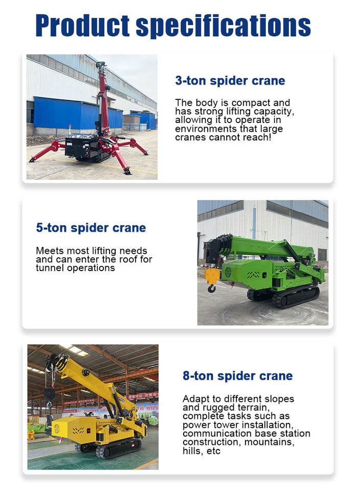 Grue araignée électrique hydraulique de 3 à 10 tonnes avec flèche de déplacement, télécommande, hauteur de levage de 10 m et système entièrement hydraulique
