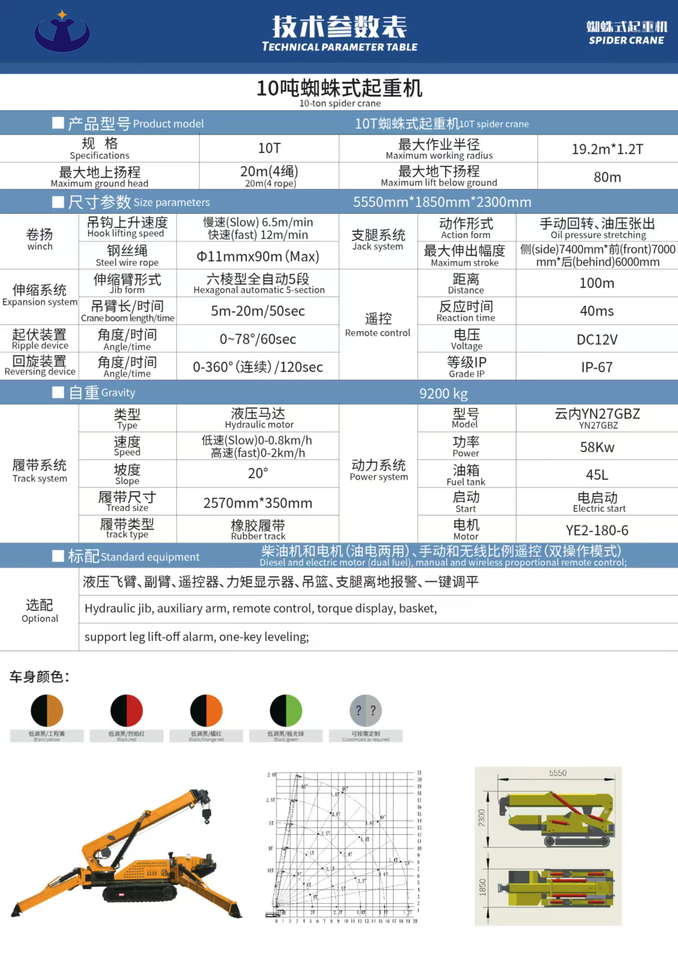 9.2m*0.6tRayon de travail maximal