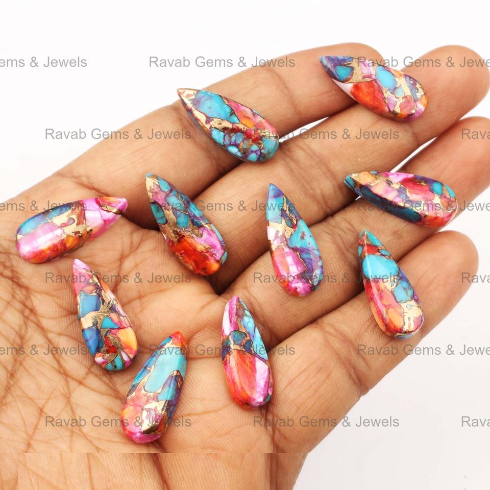 Nom du produit:Mix Oyster épineuse cuivre Turquoise 10x25mm poire Cabochon de pierres précieuses