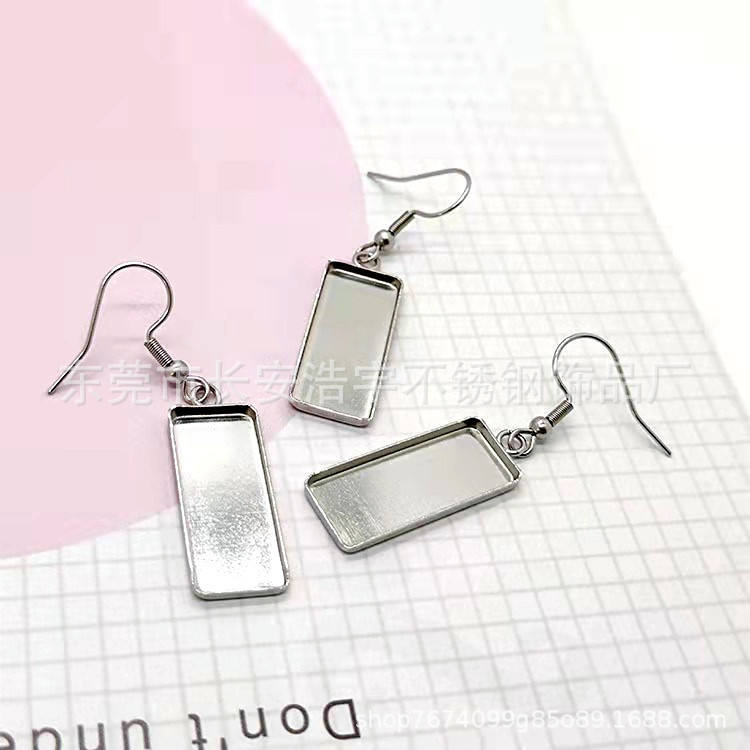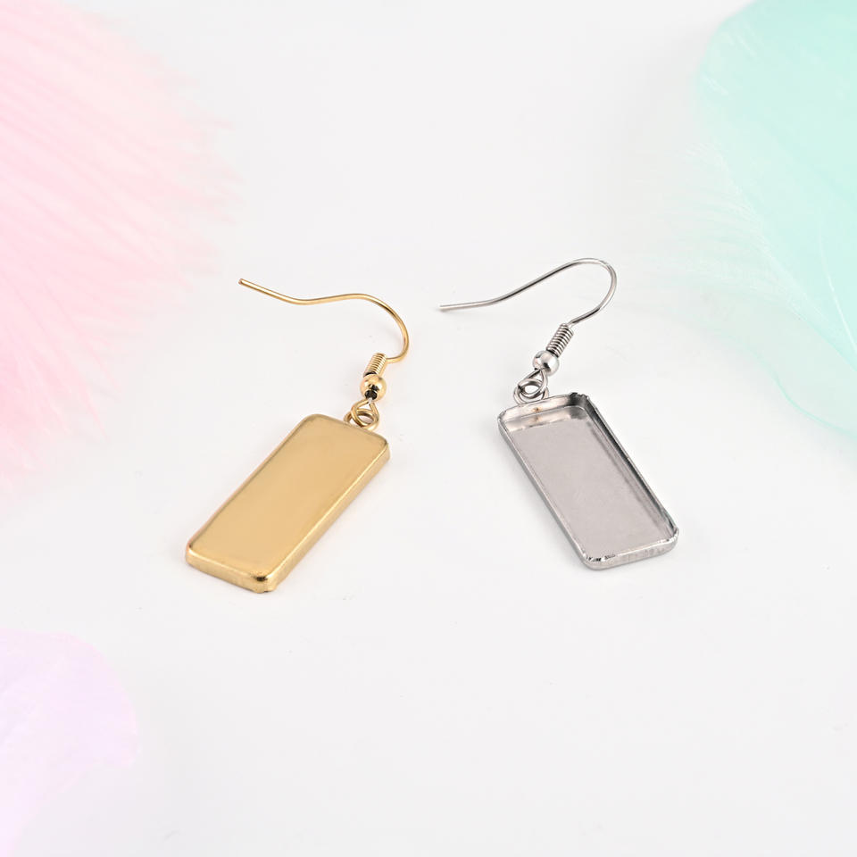 Base de cabochon rectangulaire en acier inoxydable 10x25mm, support de boucles d'oreilles, or rose, accessoires de fabrication de bijoux DIY
