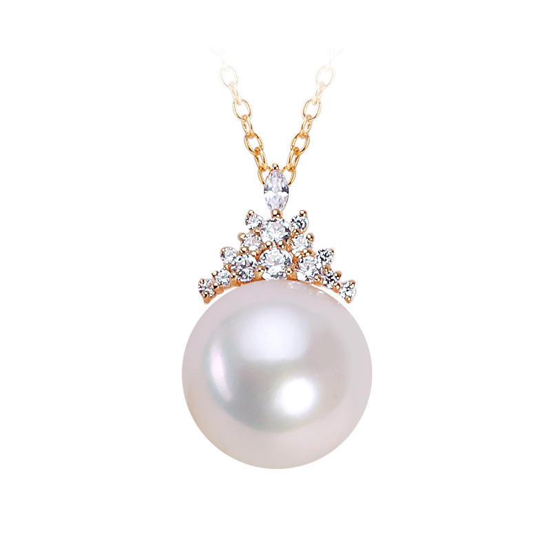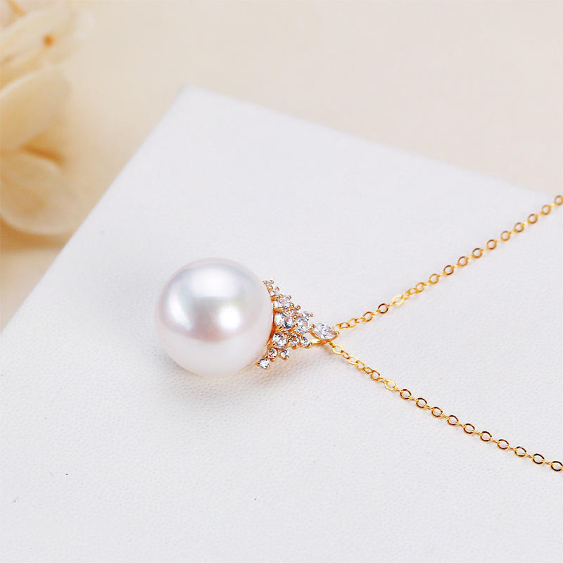 11-12MM Freshwater Edison Pearl Pendant 18k Gold Ice and Snow Queen Round Strong Light Large White Necklace