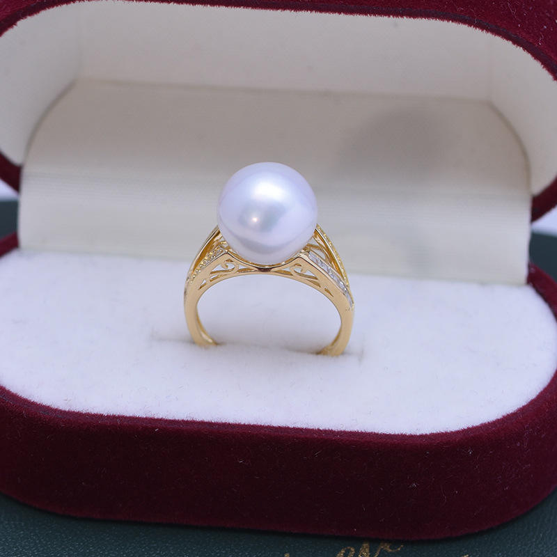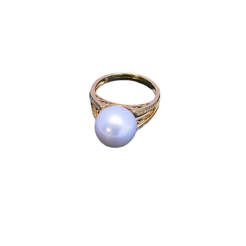 11-12mm White Freshwater Round Pearl Ring for Women S925 Silver Strong Light Fine Flaws Open Adjustable Fashion Design