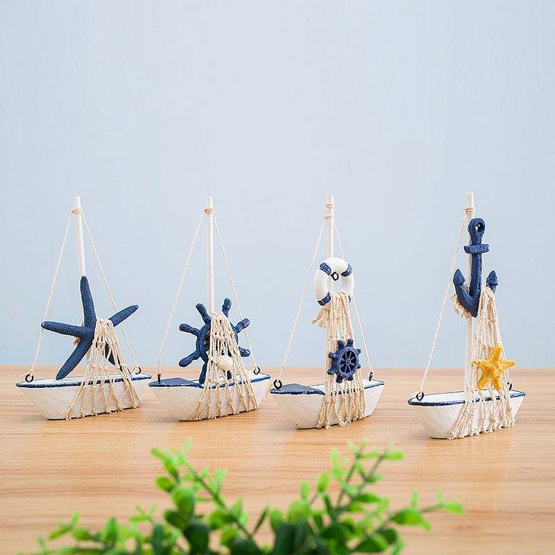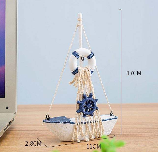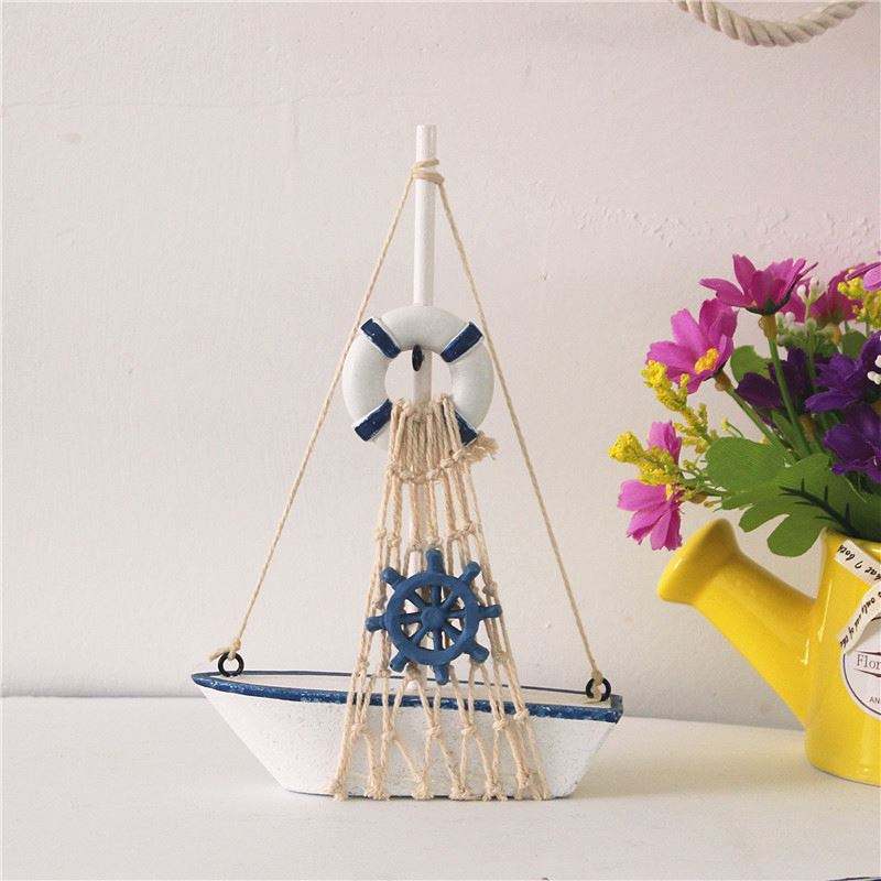 11*17 cm bateau ancre gouvernail et filets de pêche élément en bois voilier modèle nautique décoration de la maison bureau bureau ornement