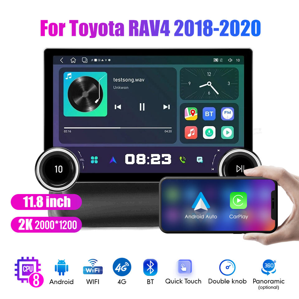11.8 "diamant double boutons 2K QLED écran 2 Din Android autoradio pour Toyota RAV4 2018 2019 2020 stéréo Android Auto Carplay