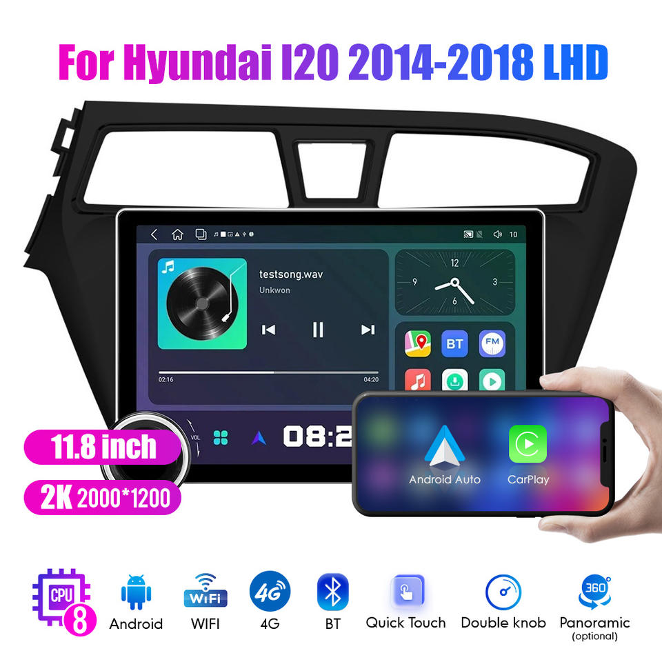 11.8 "diamant double boutons 2K QLED écran 2 Din Android autoradio pour Hyundai I20 2014-2018 LHD stéréo Android Auto Carplay