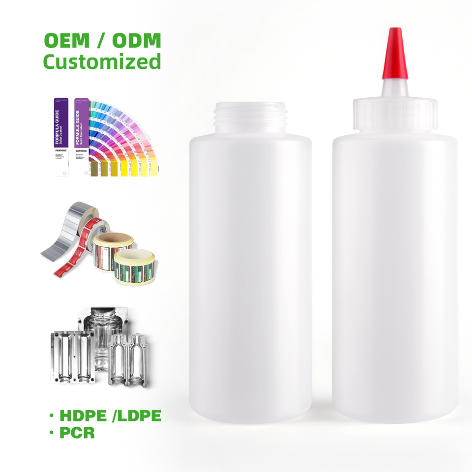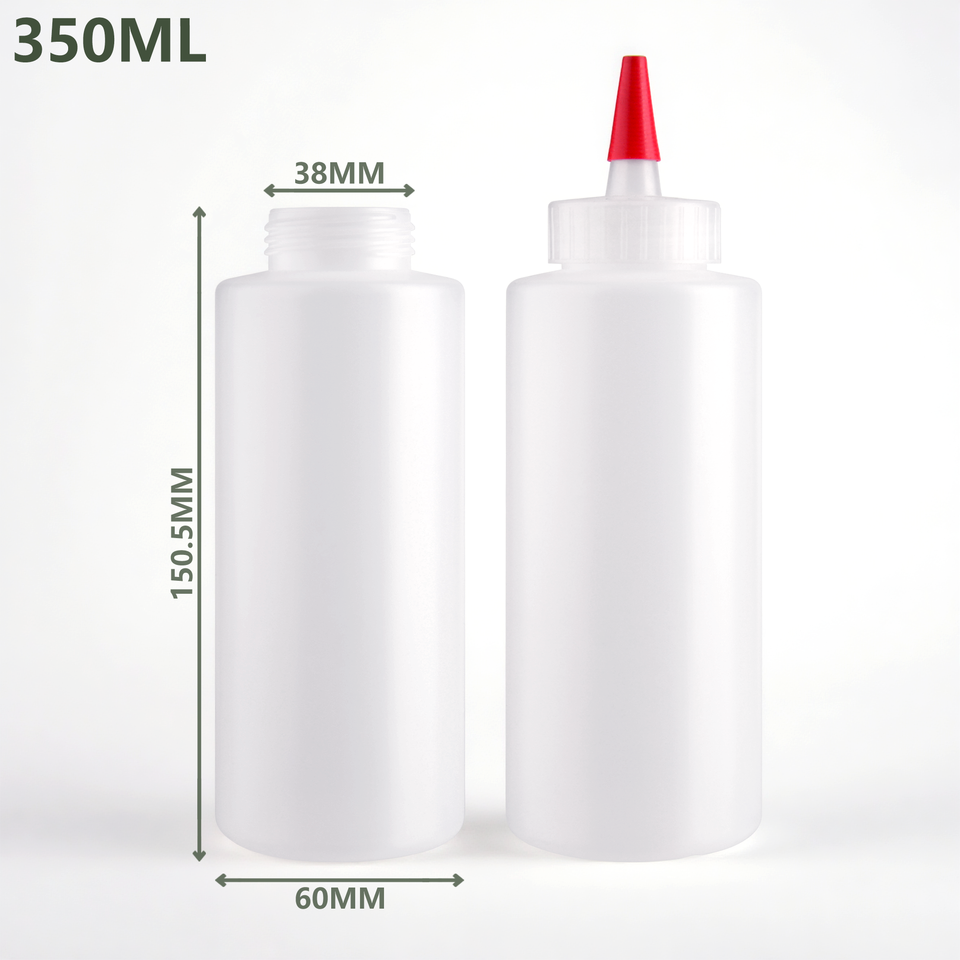 11.8 oz Bouteille personnalisée sans BPA Squeeze HDPE ECO Sauce piquante Bouteille ronde de sauce au miel classique avec couvercle à bouche pointue 350ml