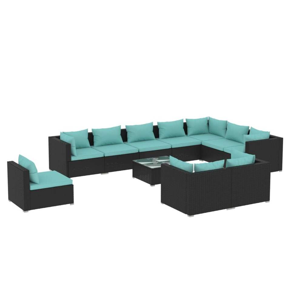 Ensemble de salon patio en rotin poly noir 11 pièces avec coussins pour mobilier d'extérieur