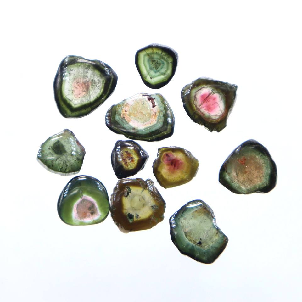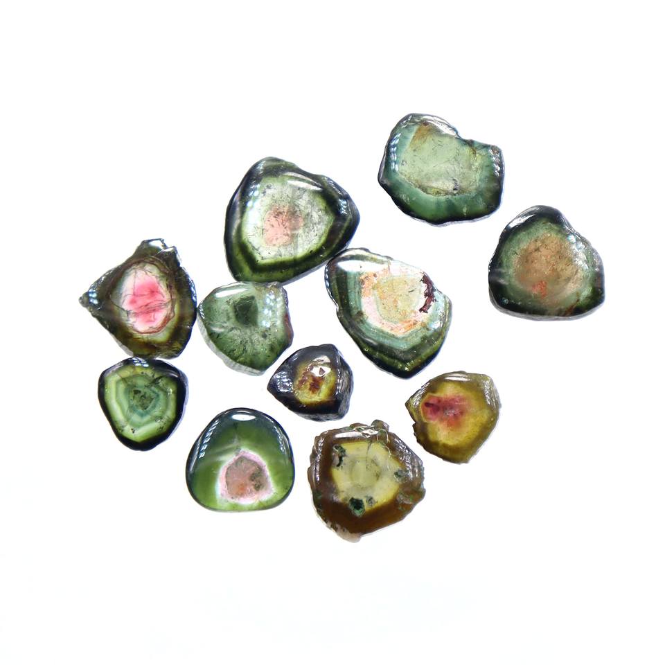 11 Pièces Lot Pastèque Bio Tourmaline Tranche Tourmaline Naturelle Tranche Forme Pierres Précieuses Prix de Gros
