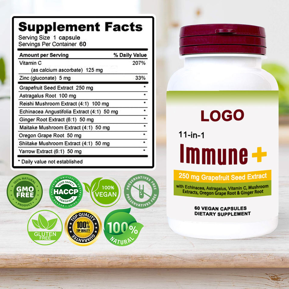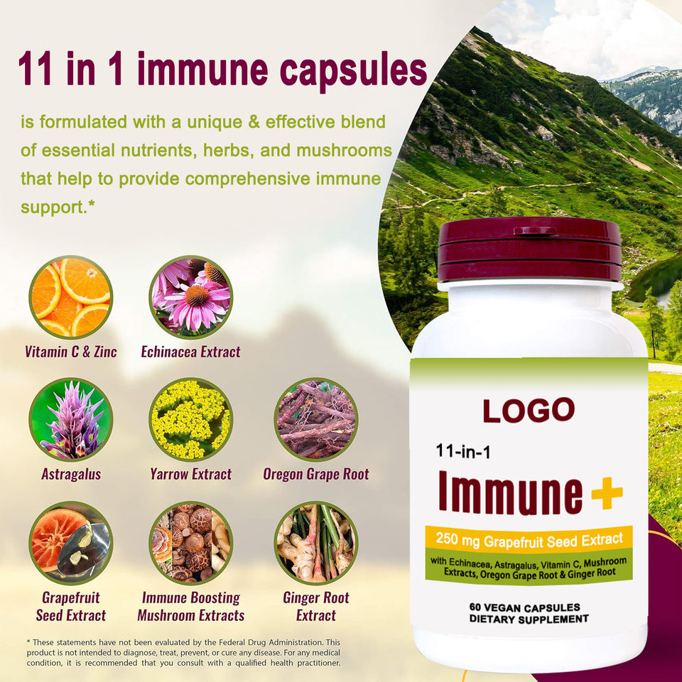 Complément alimentaire pour le soutien immunitaire 11 en 1, végétalien, extrait de pépins de pamplemousse, échinacée, goldenseal, capsules, complément à base de plantes pour la santé