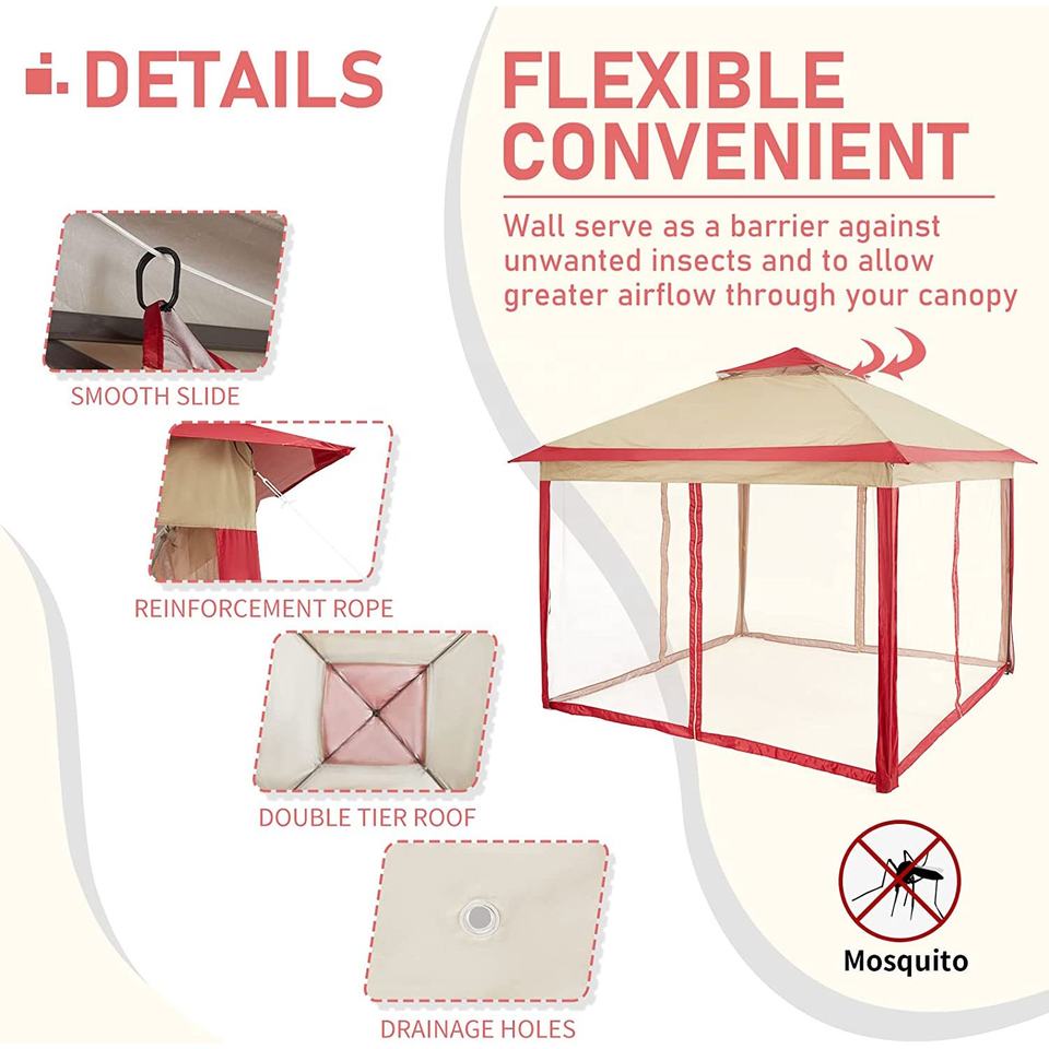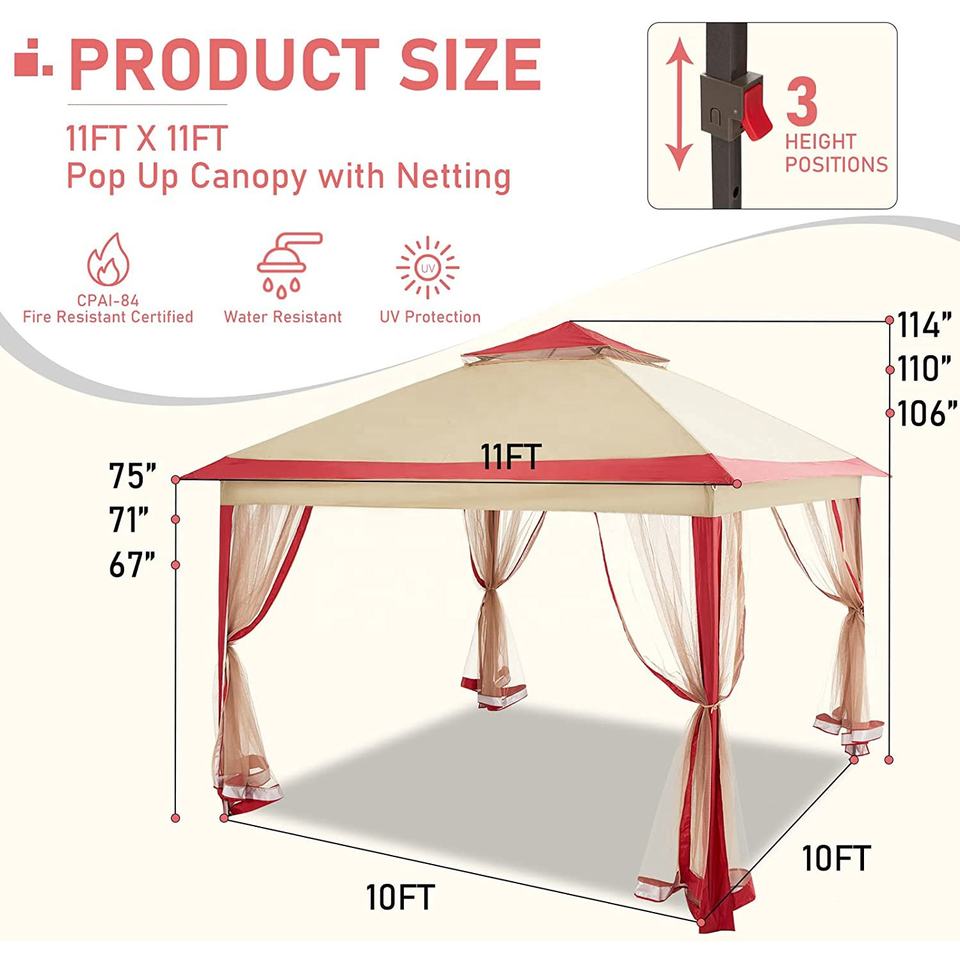 11 'x 11' Portable Pop Auvent Tente Installation Facile Pliable Cadre En Métal Gazebo Moustiquaire Rideaux pour Abri Extérieur D'été