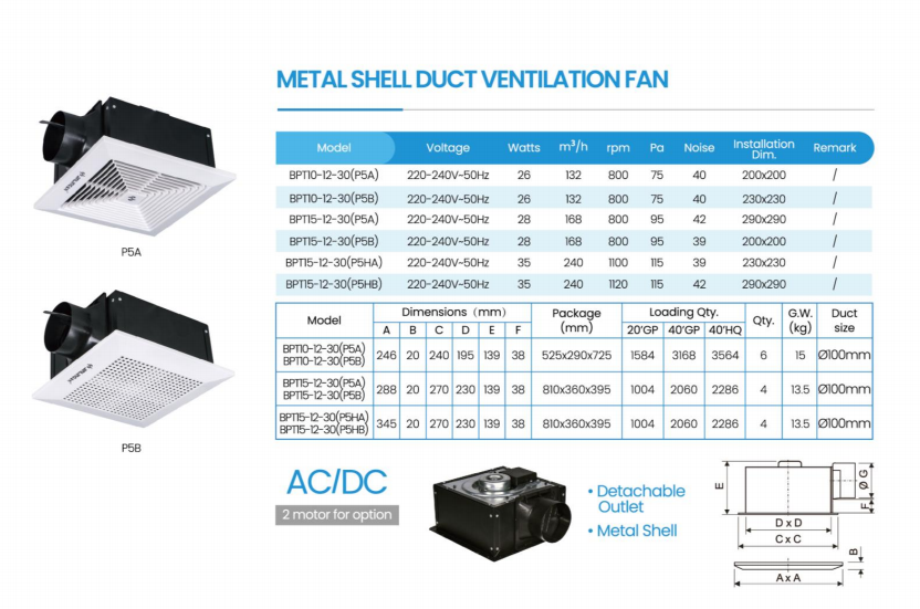 110/220V AC Motor Metal Ceiling Mount Exhaust Fan Ventilation Duct Fan for Home Office