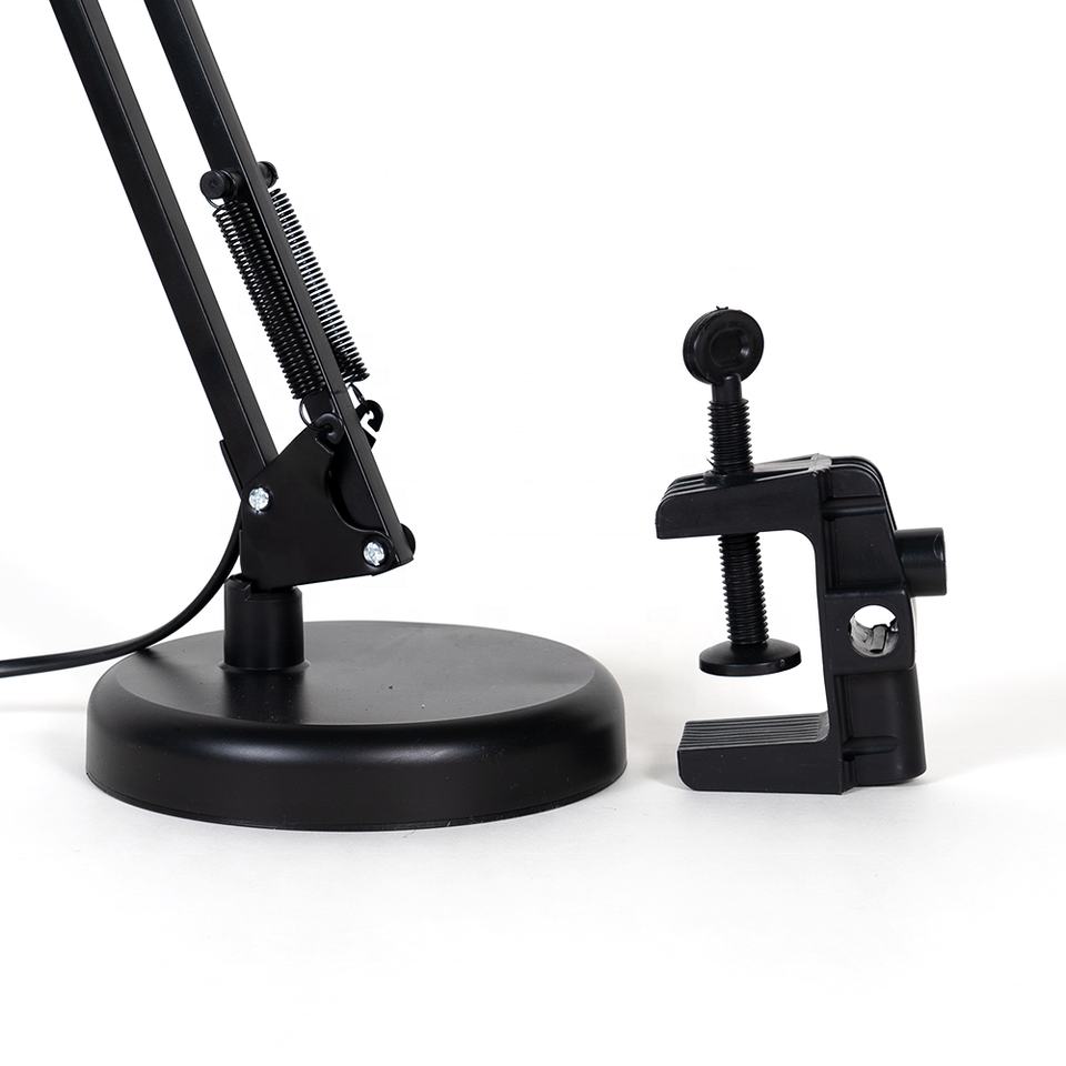 Lampe de bureau de lecture à bras articulé 110-240V avec base et pince