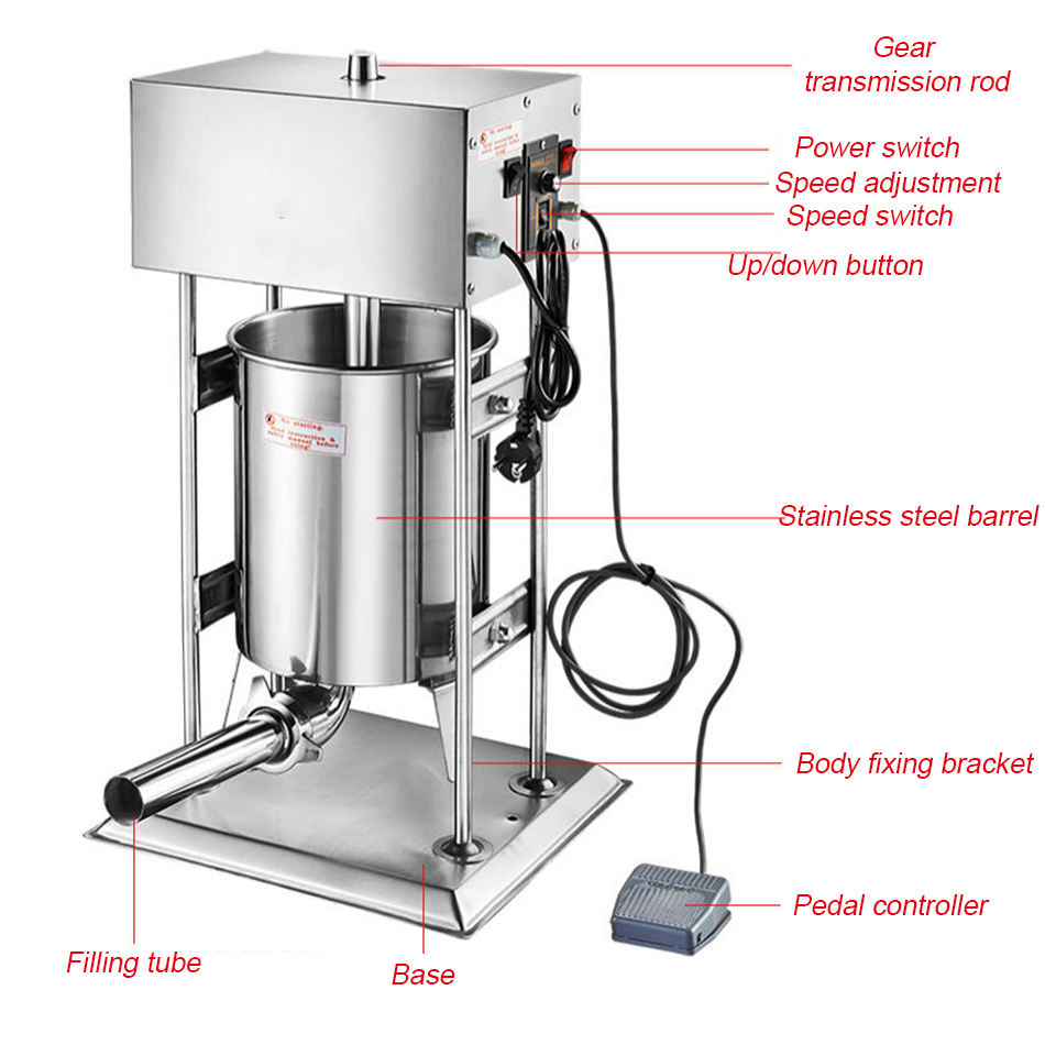 Machine à farcir les saucisses en acier inoxydable électrique 110V 250W, 30L, avec tuyau, machine à farcir les saucisses en acier 110V 250W