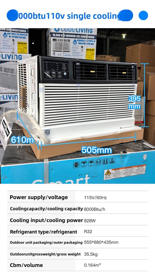 Climatiseur de fenêtre monophasé 110V~60Hz 8000Btu R32