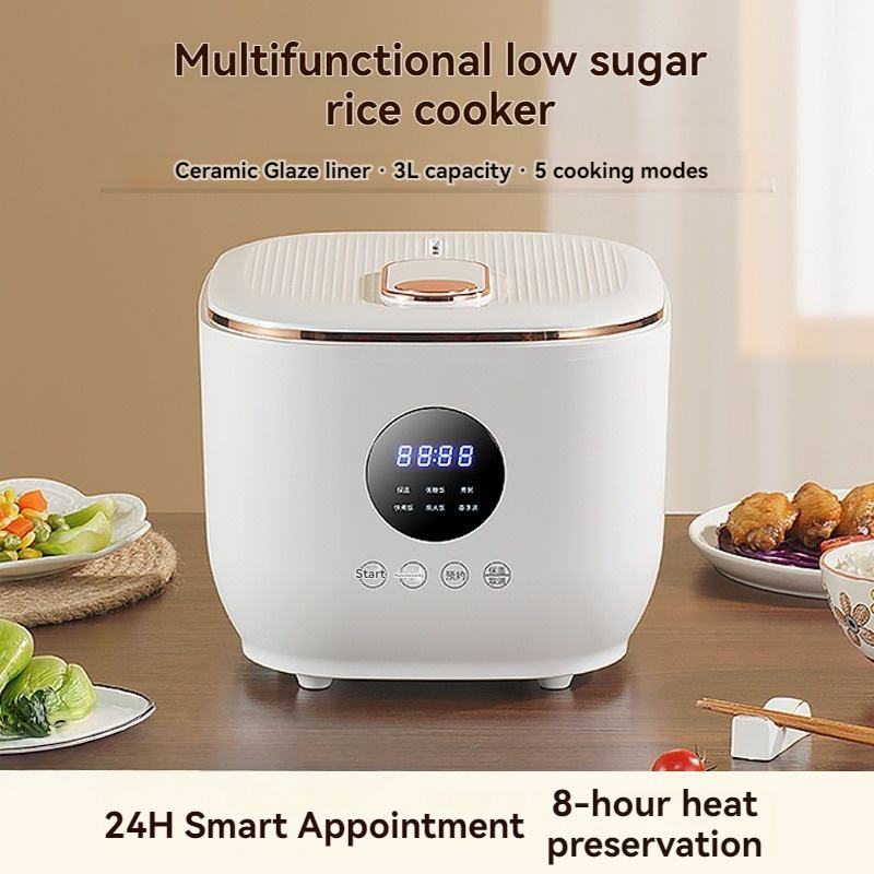 Cuiseur à riz 110V à faible teneur en sucre, 3L, avec revêtement en céramique émaillée, plateau filtrant le sucre en acier inoxydable 304, 5 modes de cuisson, maintien au chaud automatique, pour 1 à 3 personnes