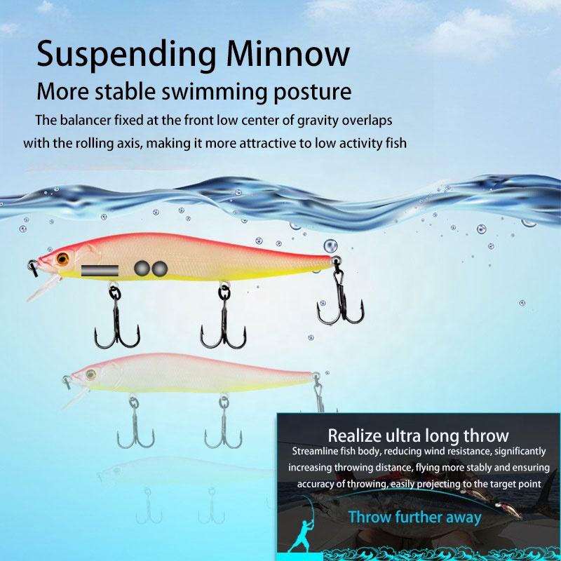 110mm 14g Leurres de pêche flottants suspendus Wobblers Appâts artificiels Predator Tackle Jerkbaits pour brochet et bar