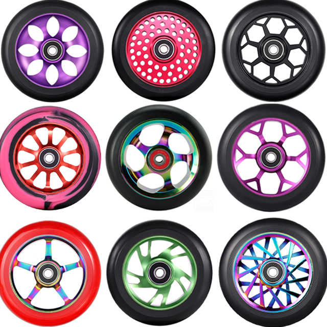 Roues de Trottinette Pro de 110 mm à Haute Précision et Vitesse, Couleur Personnalisable, Noyau Métallique en Alliage PU, Frein à Pied pour Cascades Deux Roues, Roulement à Billes Durable