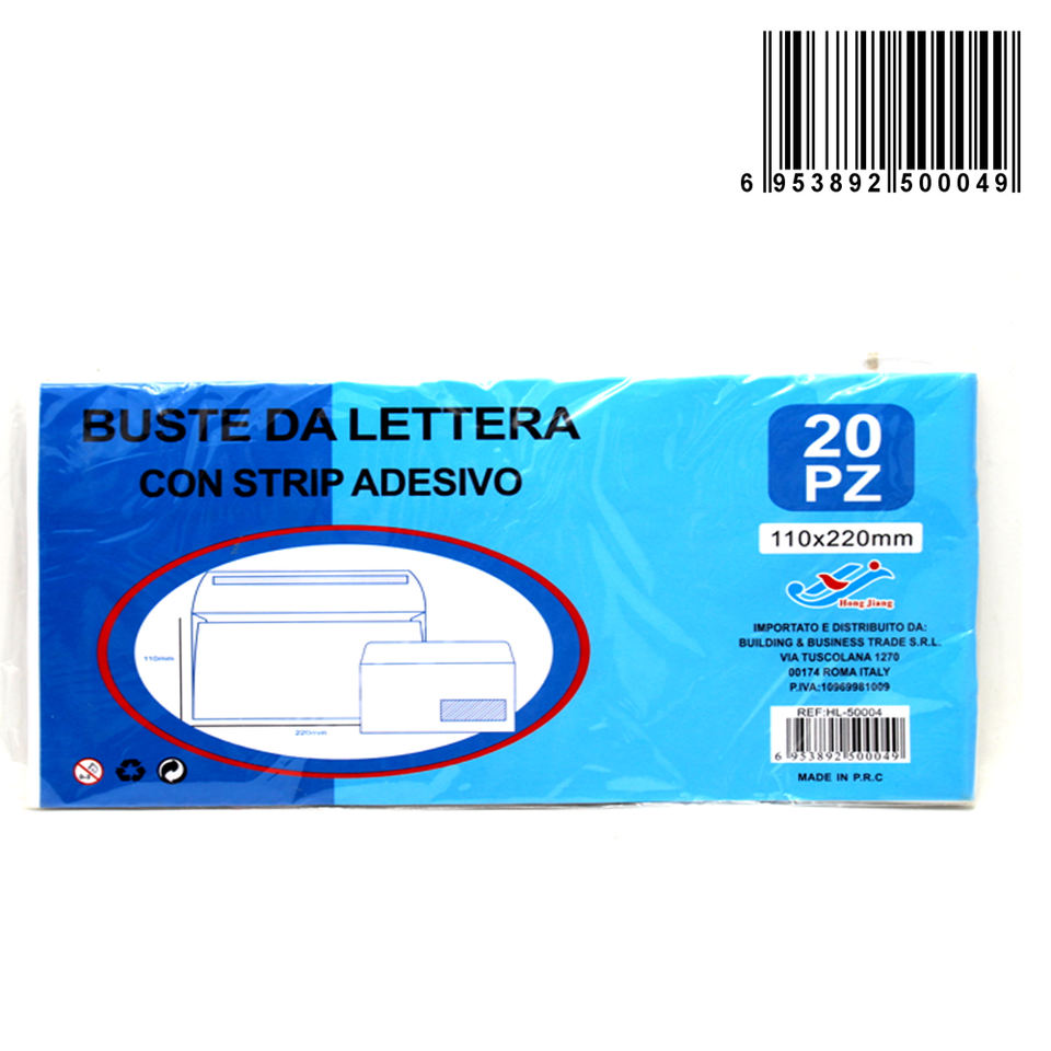 Enveloppes pour fenêtre Hang Jiang 110x220mm 20 pièces avec bande adhésive pour envoi postal