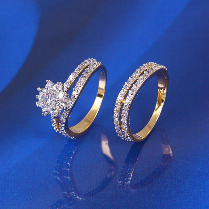 11387 xuping 2 pièces/ensemble Anneaux de couple multicolores en or Nouveau modèle Bague de mariage Bijoux