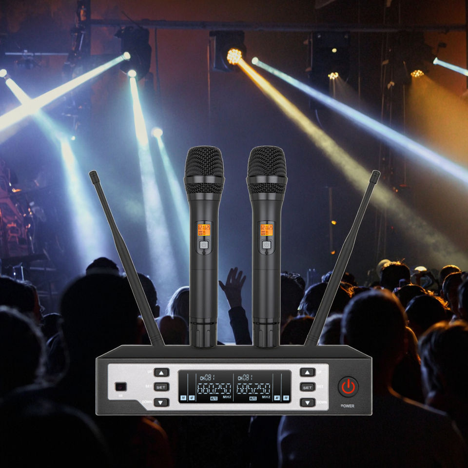 Système de microphone sans fil professionnel 113D à 2 microphones, double canal UHF, vente chaude, détecteur pour scène