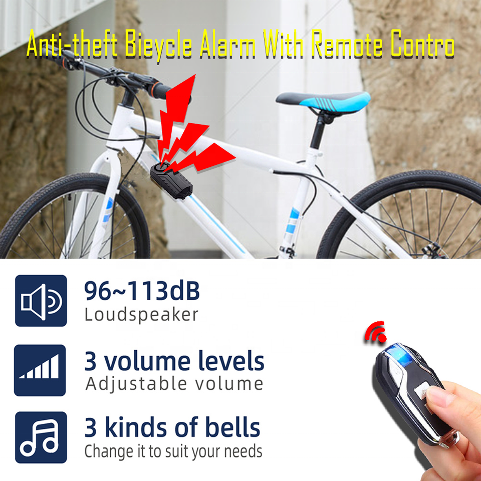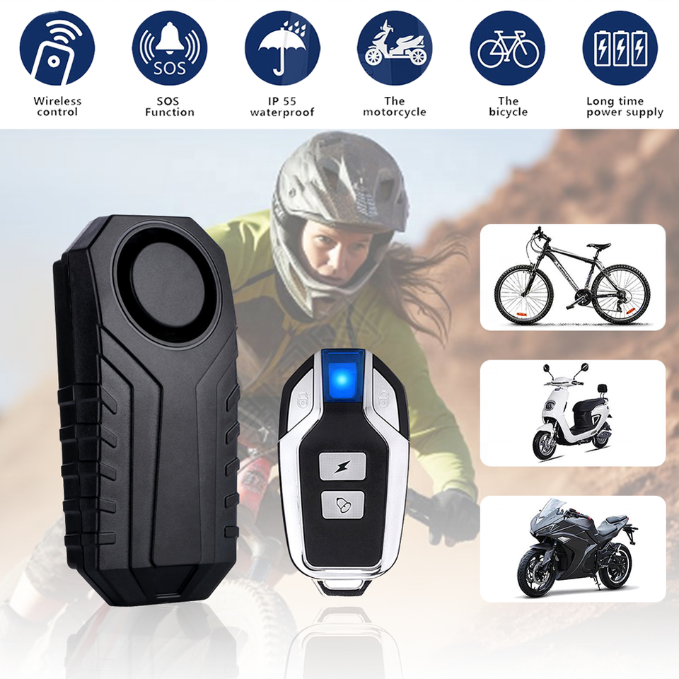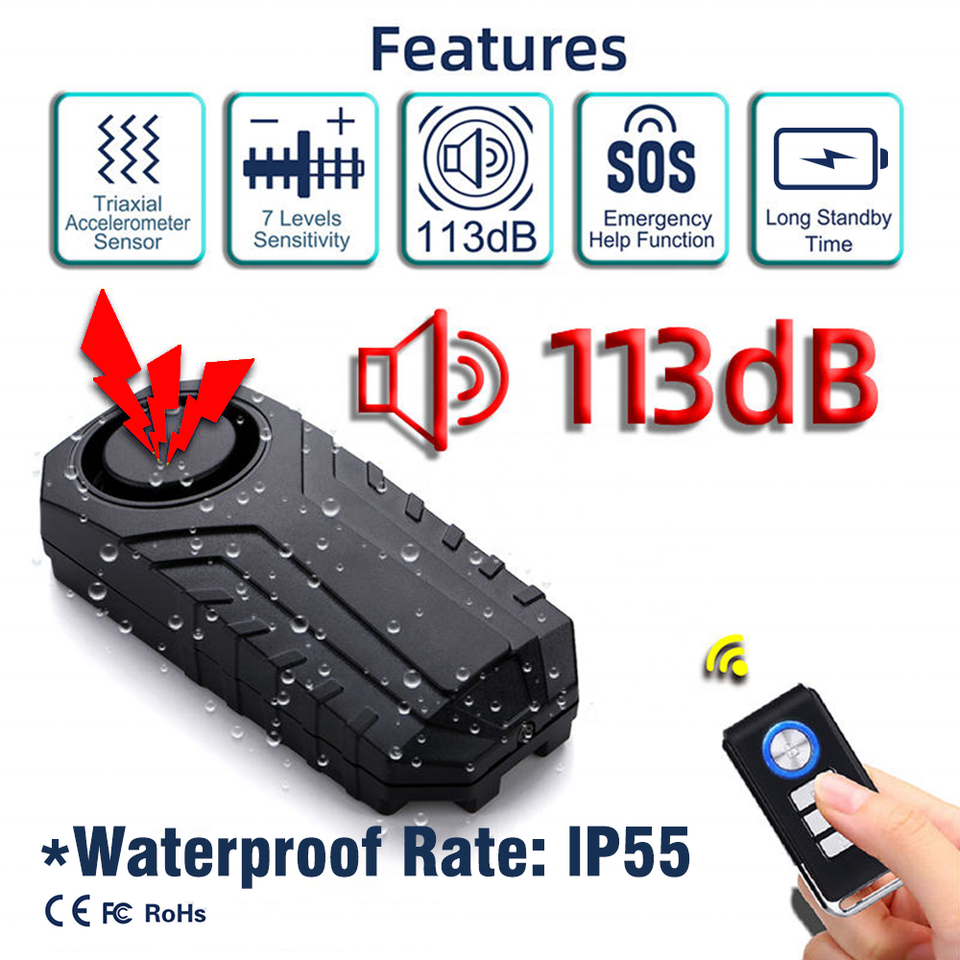 Kit d'alarme sans fil 113 dB étanche IP65 antivol avec capteur de vibration, fonction SOS et télécommande, portée 20-50 m pour vélos
