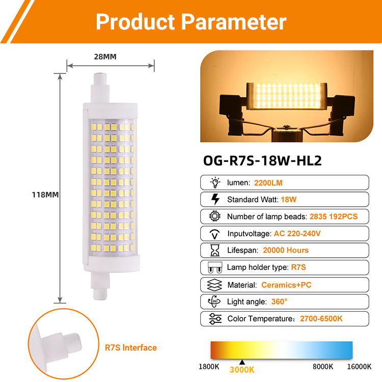 118mm Led R7s 18w vente directe en usine Led R7s remplacement ampoule halogène 300w R7s Led ampoules de maïs