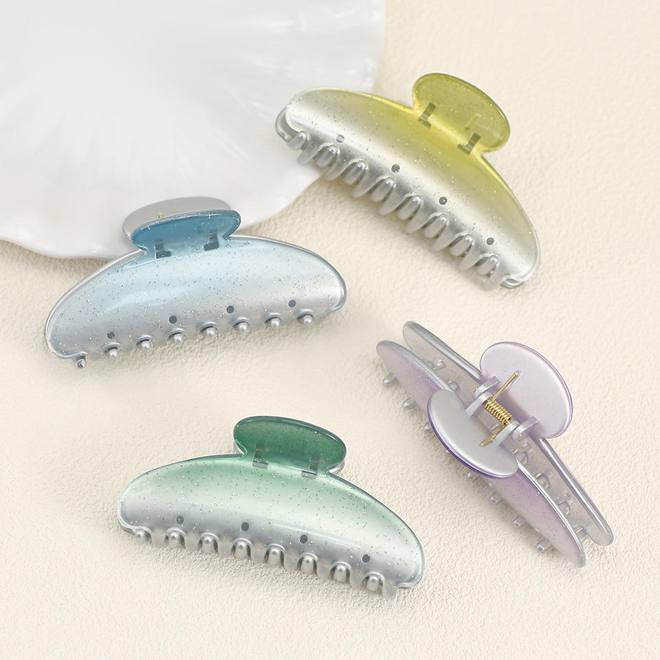 Pince à cheveux requin demi-ronde 11 cm en PC rose dégradé scintillant pour femme, usage quotidien décontracté