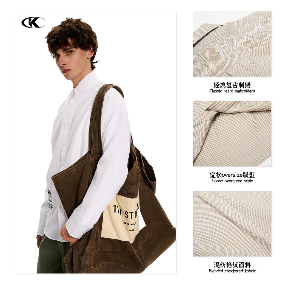 Chemise à carreaux perlée respirante de style américain 11KN, couleur claire, sans repassage, pour homme et femme, coupe ample, décontractée, amincissante, tridimensionnelle