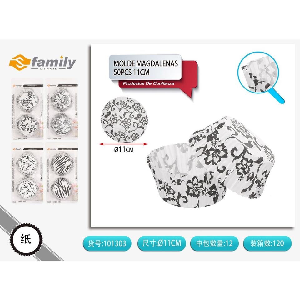 11cm Black and White Muffin Pans, 50-Pack - Baking Molds