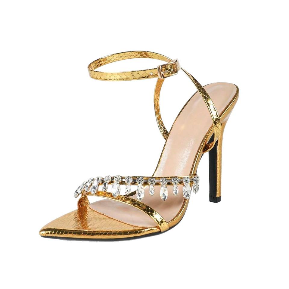 Sandales compensées sexy pour femme, style européen et américain, à bout ouvert, avec strass transparents et fermeture à boucle, nouvelle collection été 2025, grande taille, 11 cm