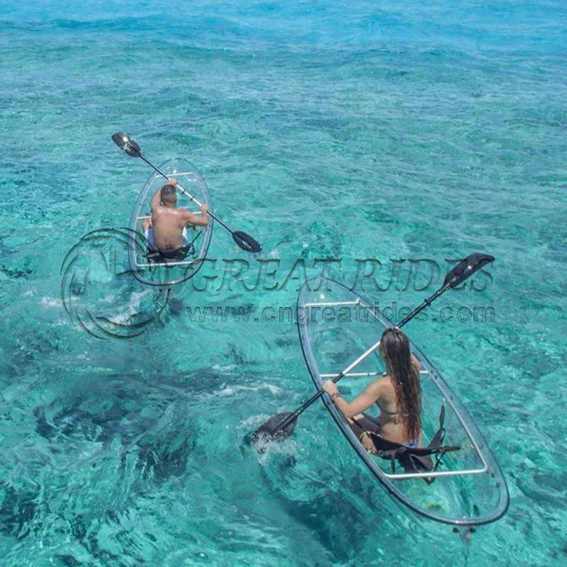 Emballage Standard d'exportation pour bateau de pêche en plastique de haute qualité cristal Durable pagaie canoë Double clair Transparent en plastique Kayak