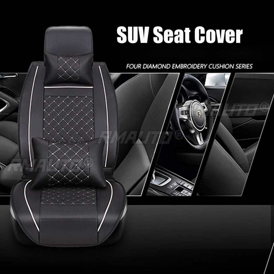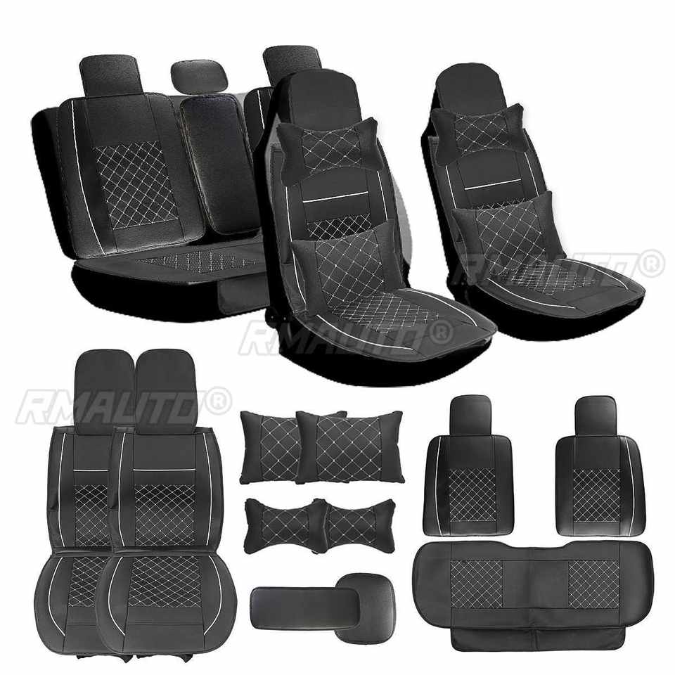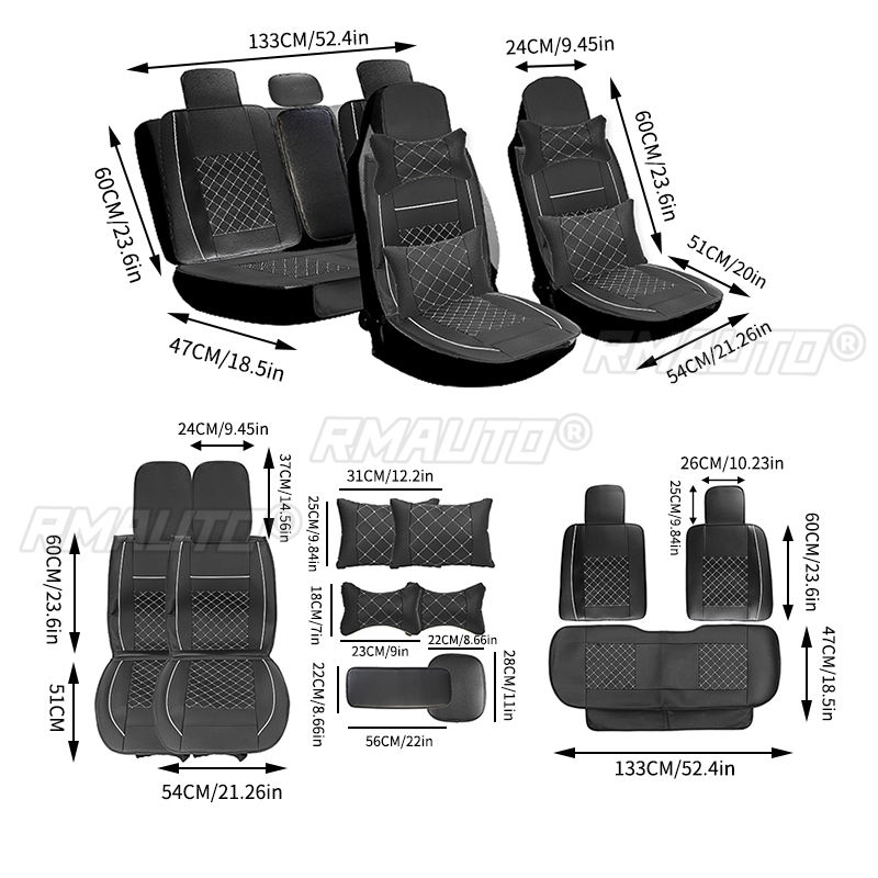 11 pièces Housses de siège auto et coussins de protection en cuir PU pour automobiles, avec coussin lombaire