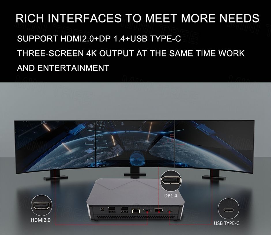 1 x HD-MI, 1 x DP, 1 x Type-C