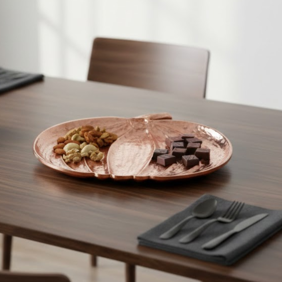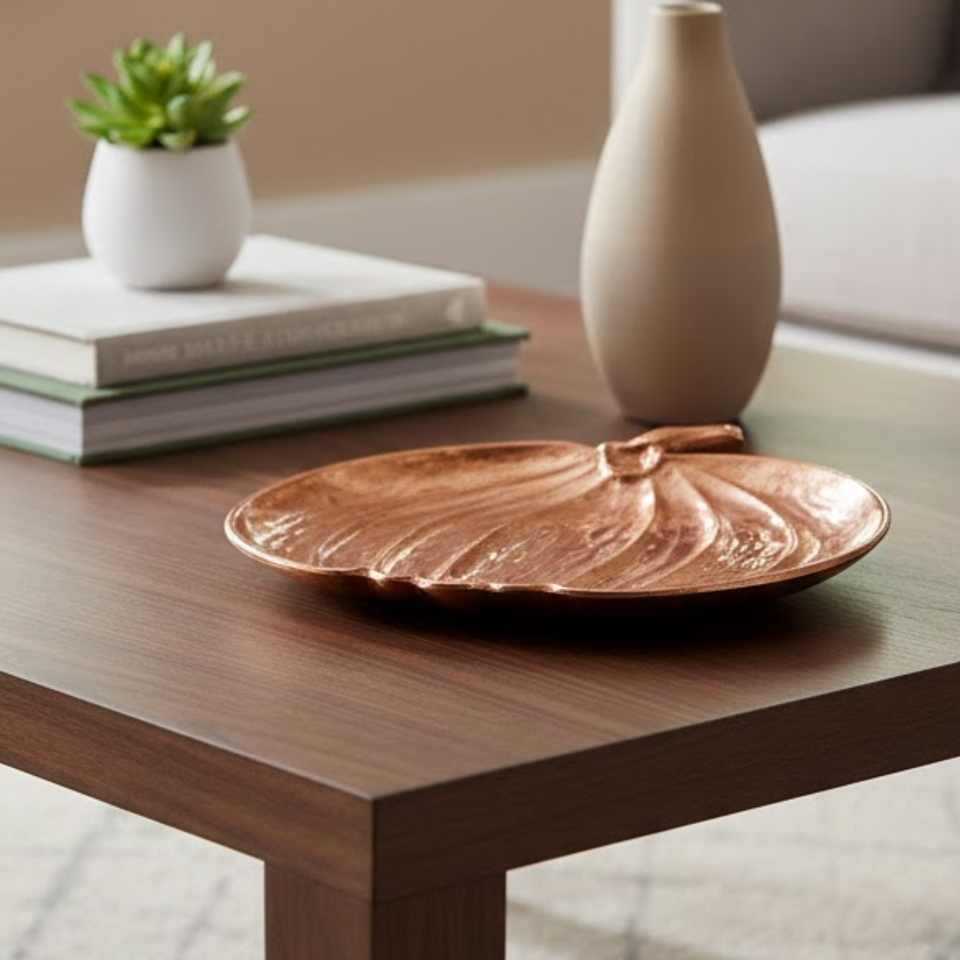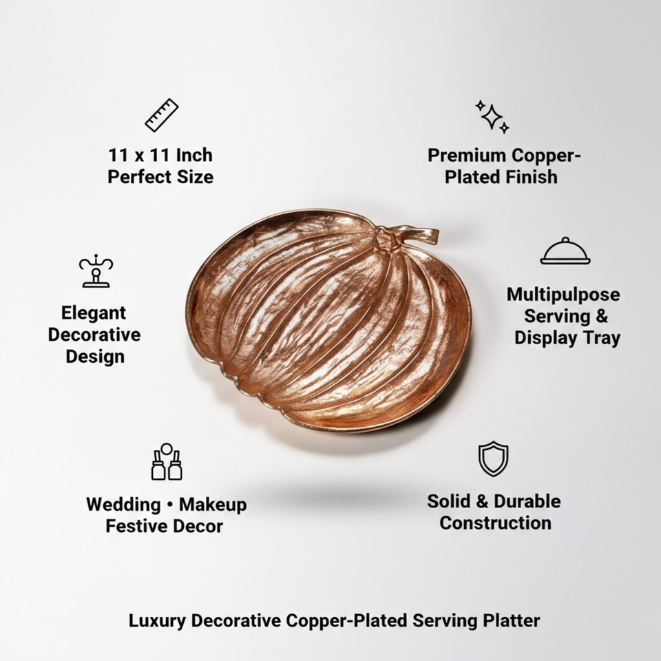REPLICARTZ Plateau de service rond plaqué cuivre de 11x11 pouces | Plateau décoratif solide pour mariage, présentoir de maquillage et décoration de maison